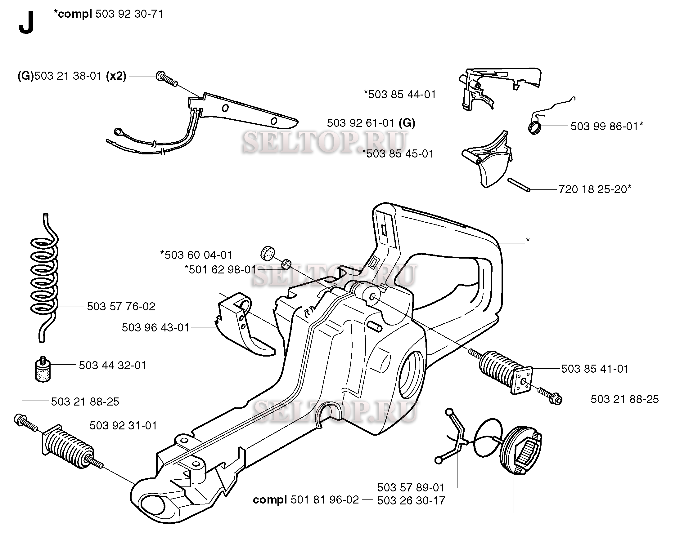 Топливный бак для бензопилы Husqvarna 357 XP (с 2003-04), взрыв-схема: