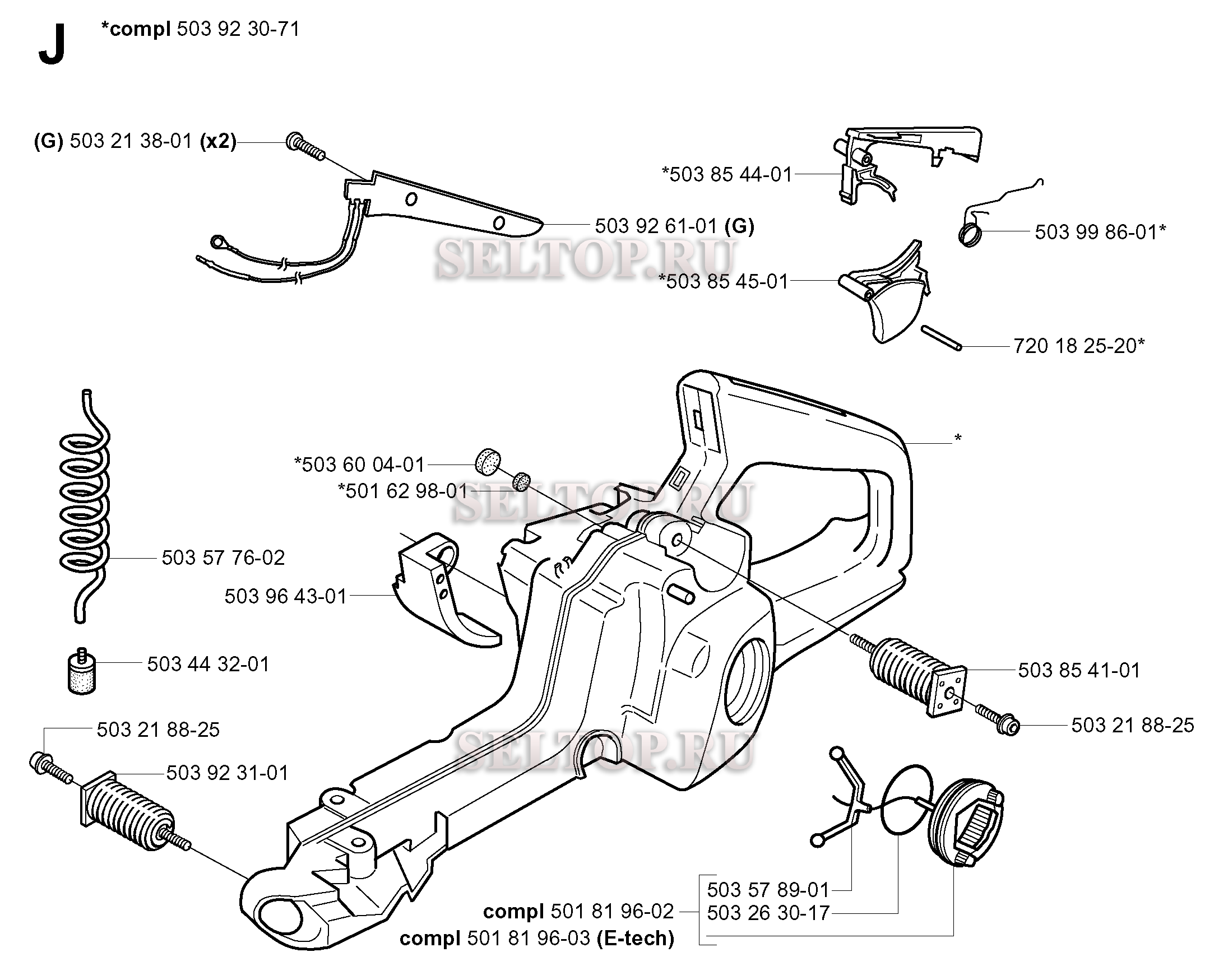 Топливный бак для бензопилы Husqvarna 357 XP (с 2004-05), взрыв-схема: