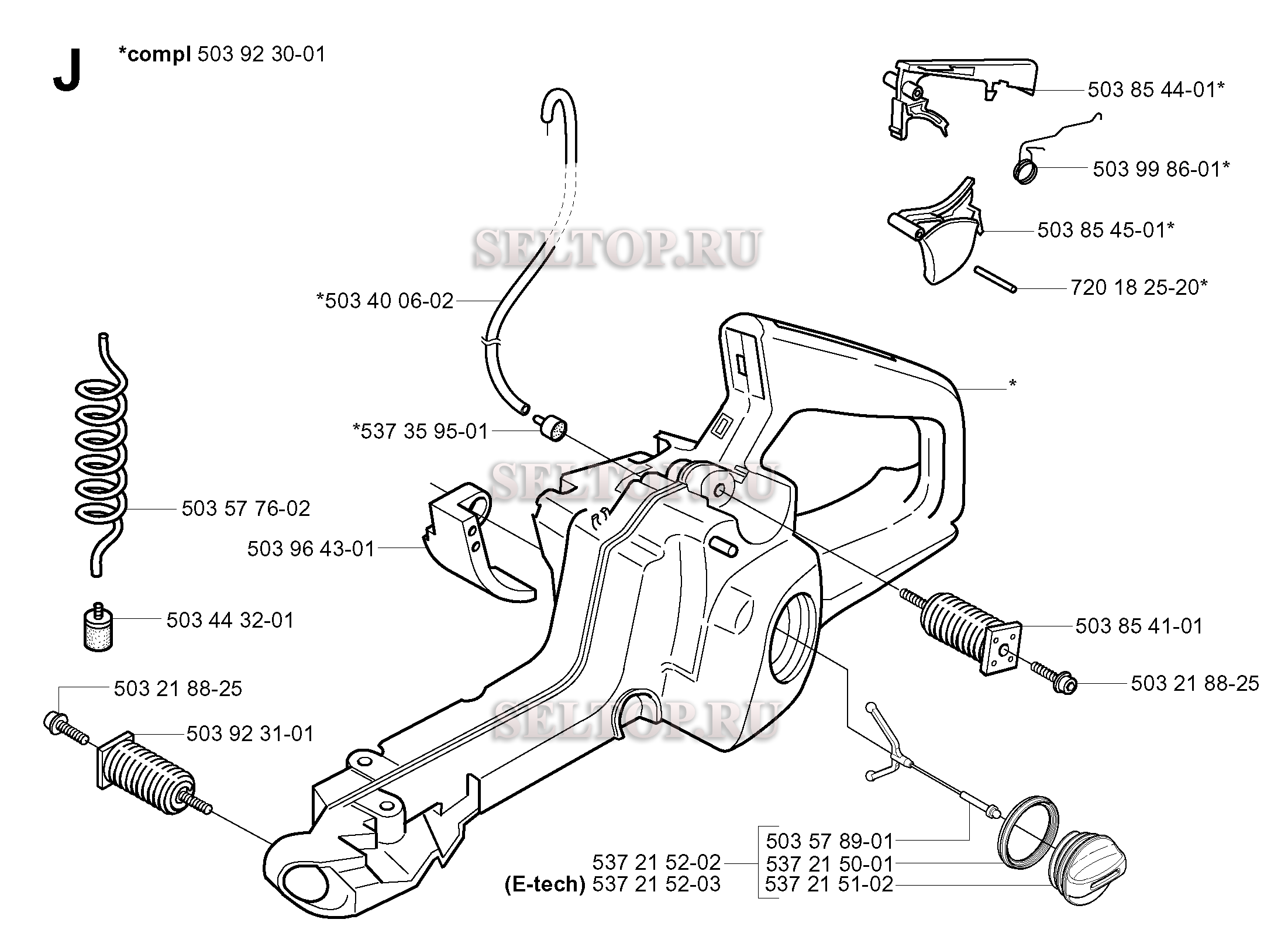 Топливный бак для бензопилы Husqvarna 357 XP (с 2005-02), взрыв-схема: