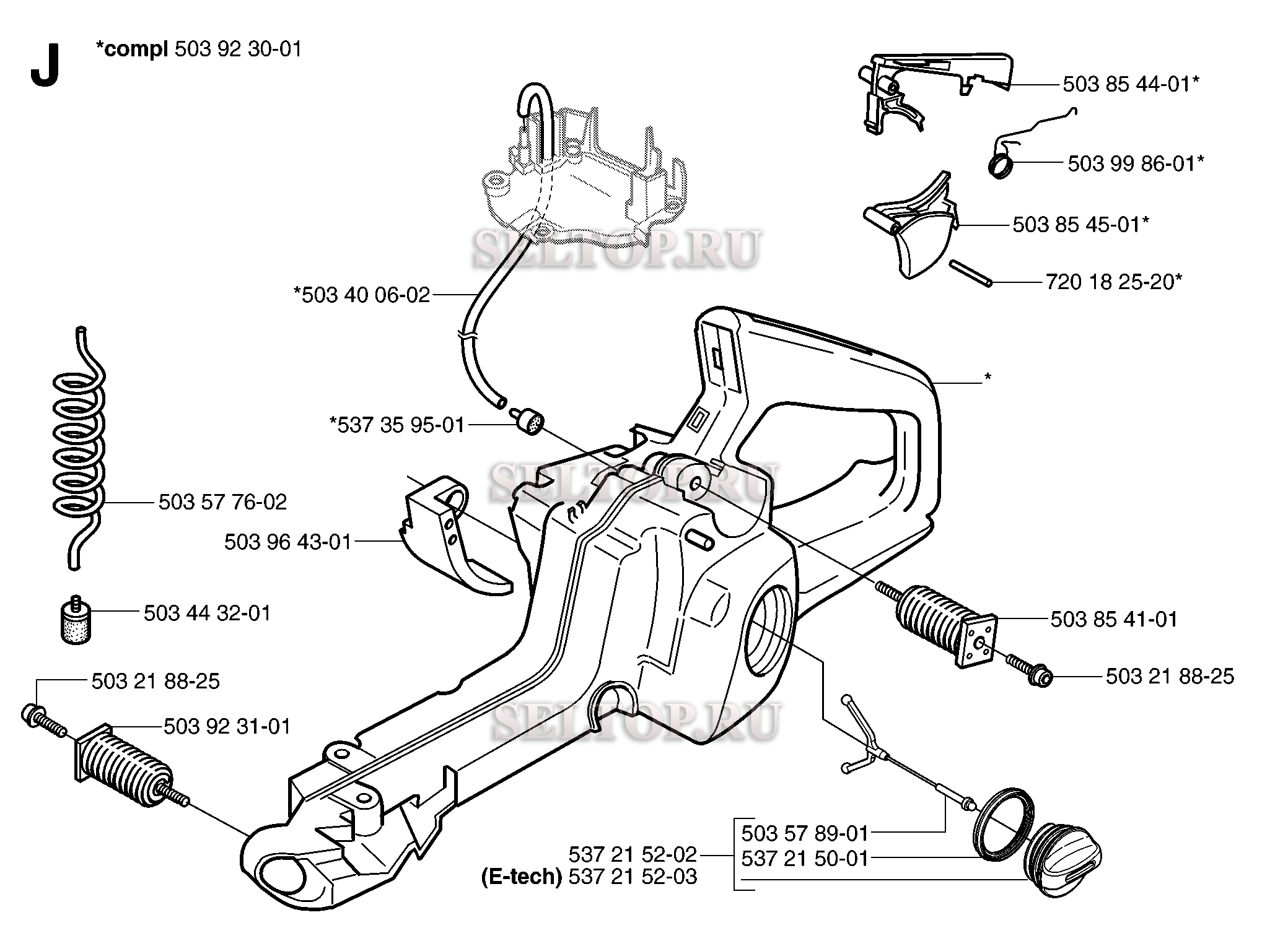 Топливный бак для бензопилы Husqvarna 357 XP (с 2006-02), взрыв-схема: