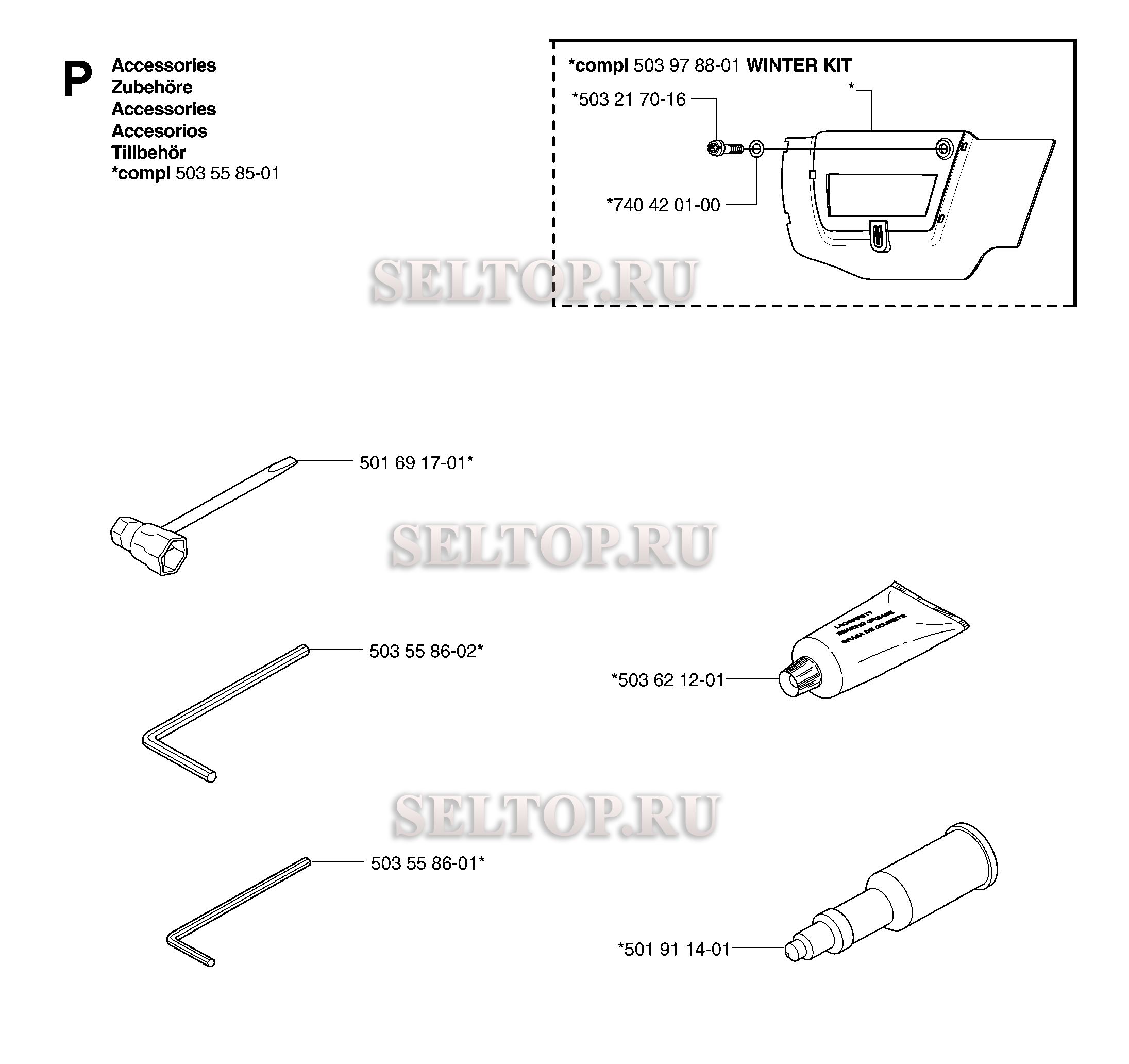 Аксессуары для бензопилы Husqvarna 357 XP (с 2007-03), взрыв-схема: