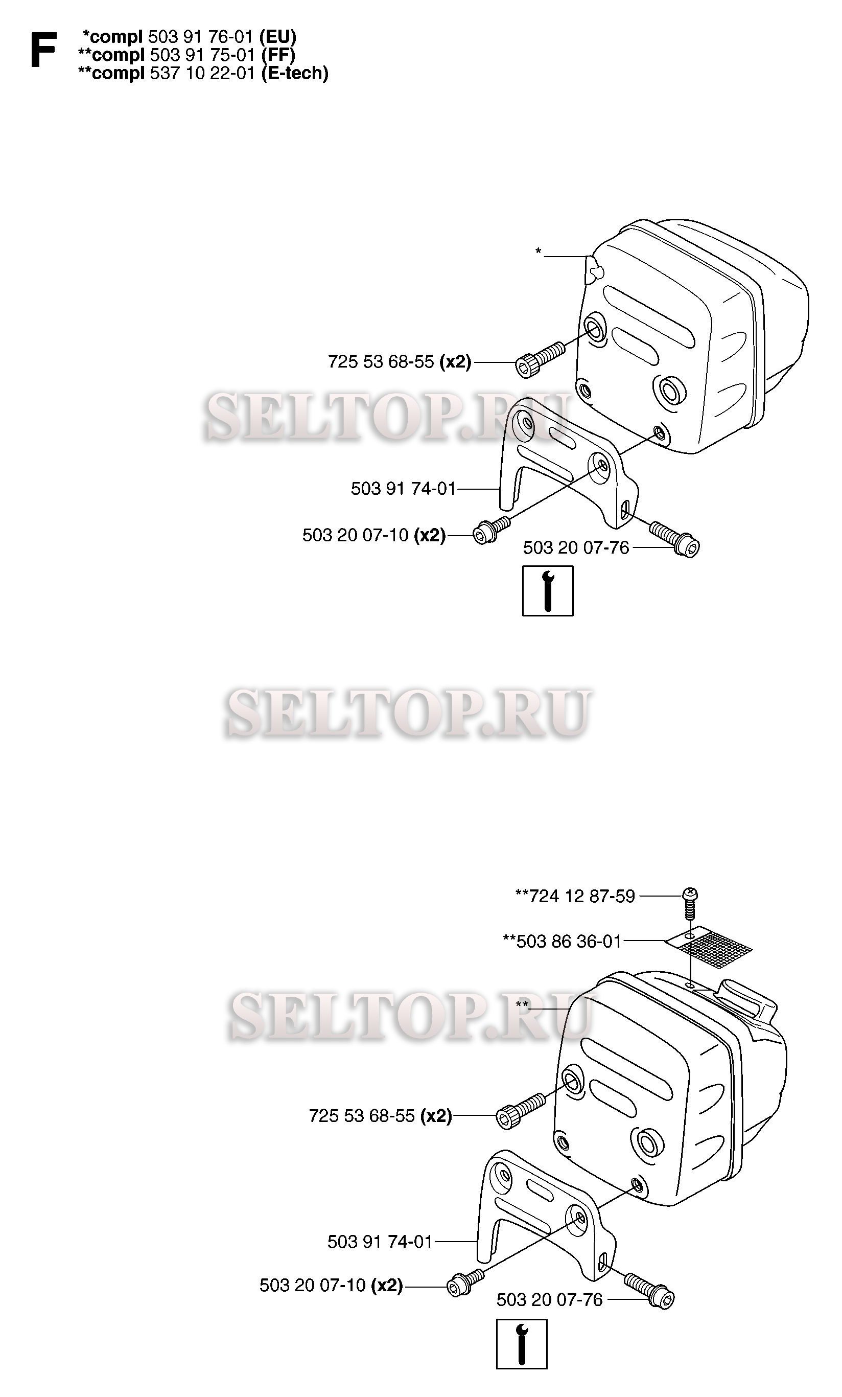 Глушитель для бензопилы Husqvarna 359 EPA (с 2007-03), взрыв-схема: