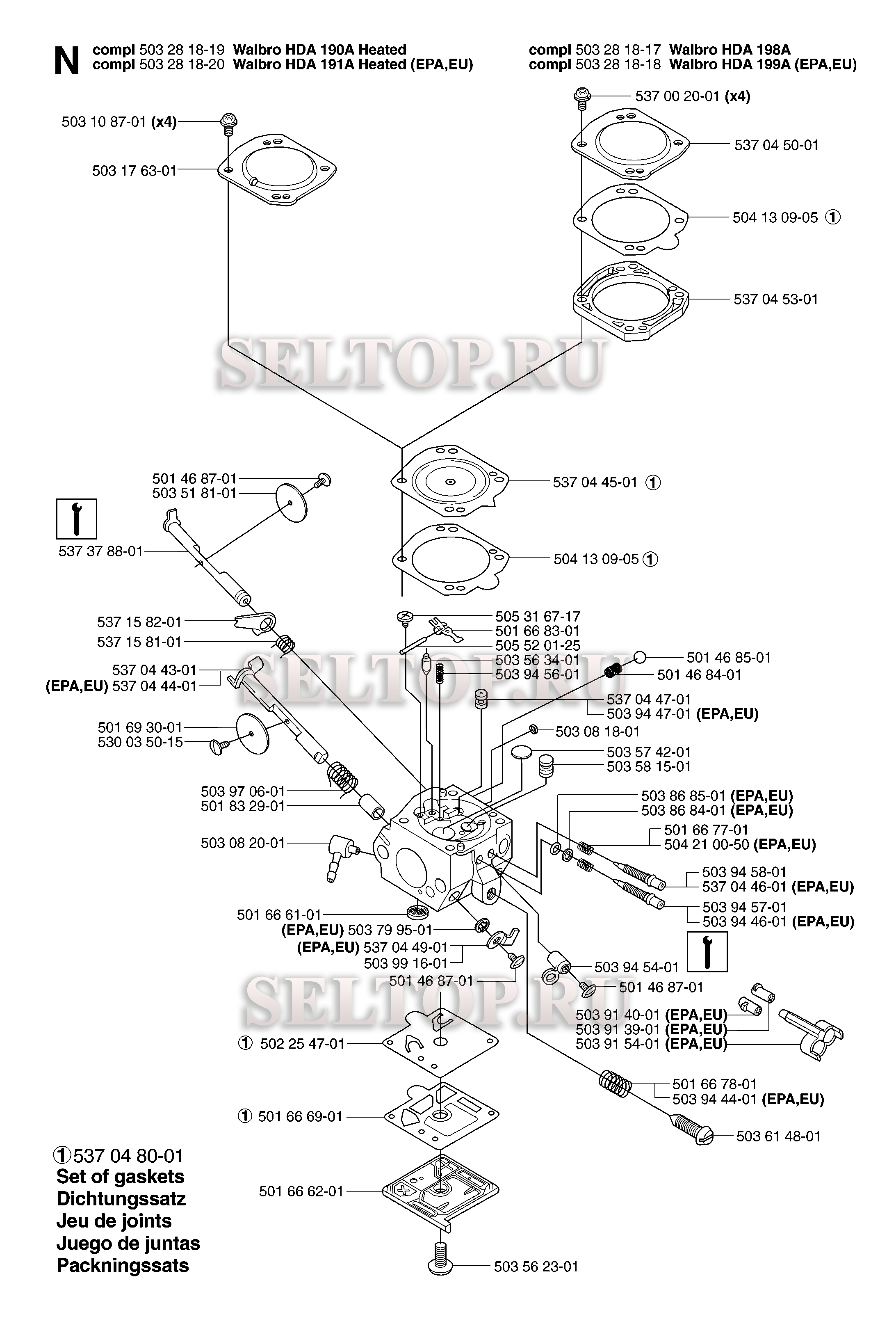 Карбюратор для бензопилы Husqvarna 359 EPA (с 2007-03), взрыв-схема: