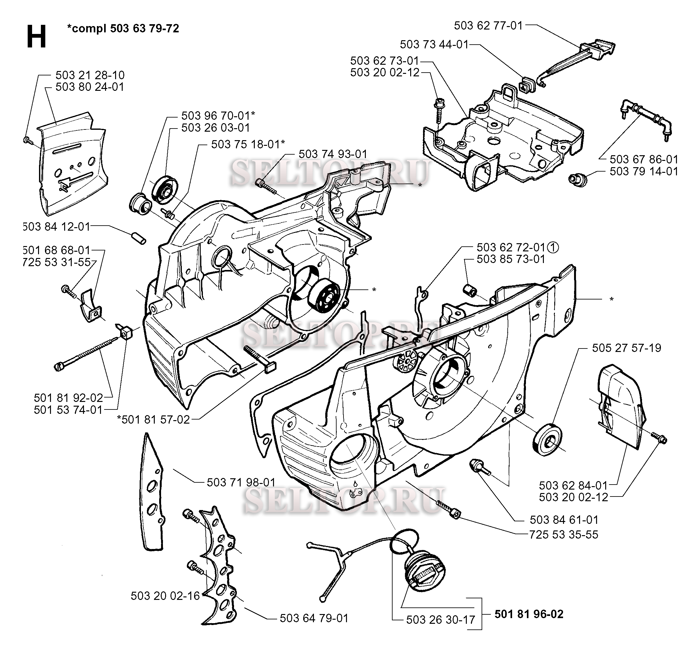 Картер для бензопилы Husqvarna 362 XP EPA (с 1998-08), взрыв-схема: