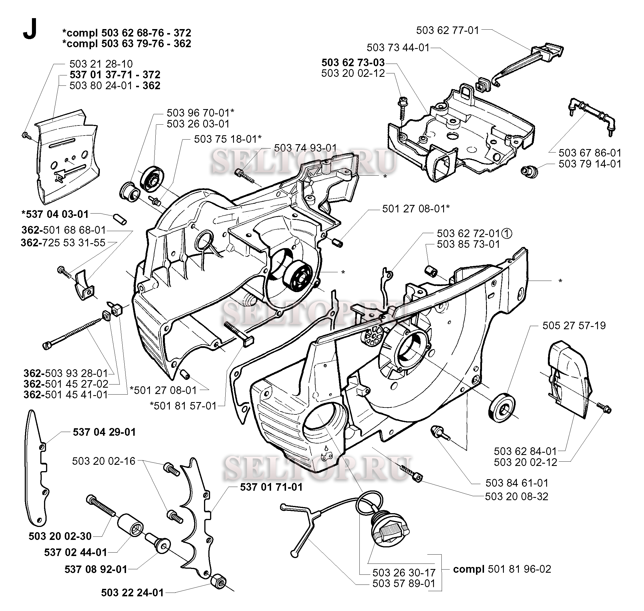 Картер для бензопилы Husqvarna 362 XP SPECIAL (с 1999-11), взрыв-схема: