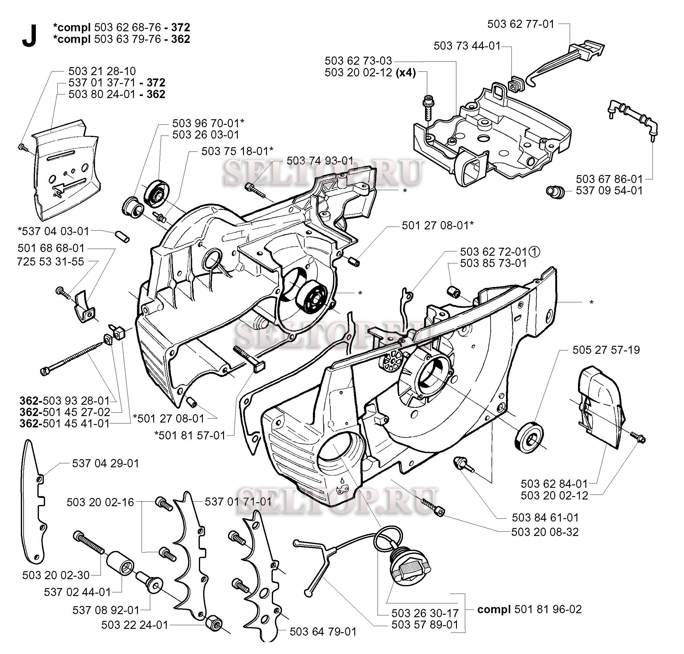 Картер для бензопилы Husqvarna 362 XP SPECIAL (с 2001-10), взрыв-схема: