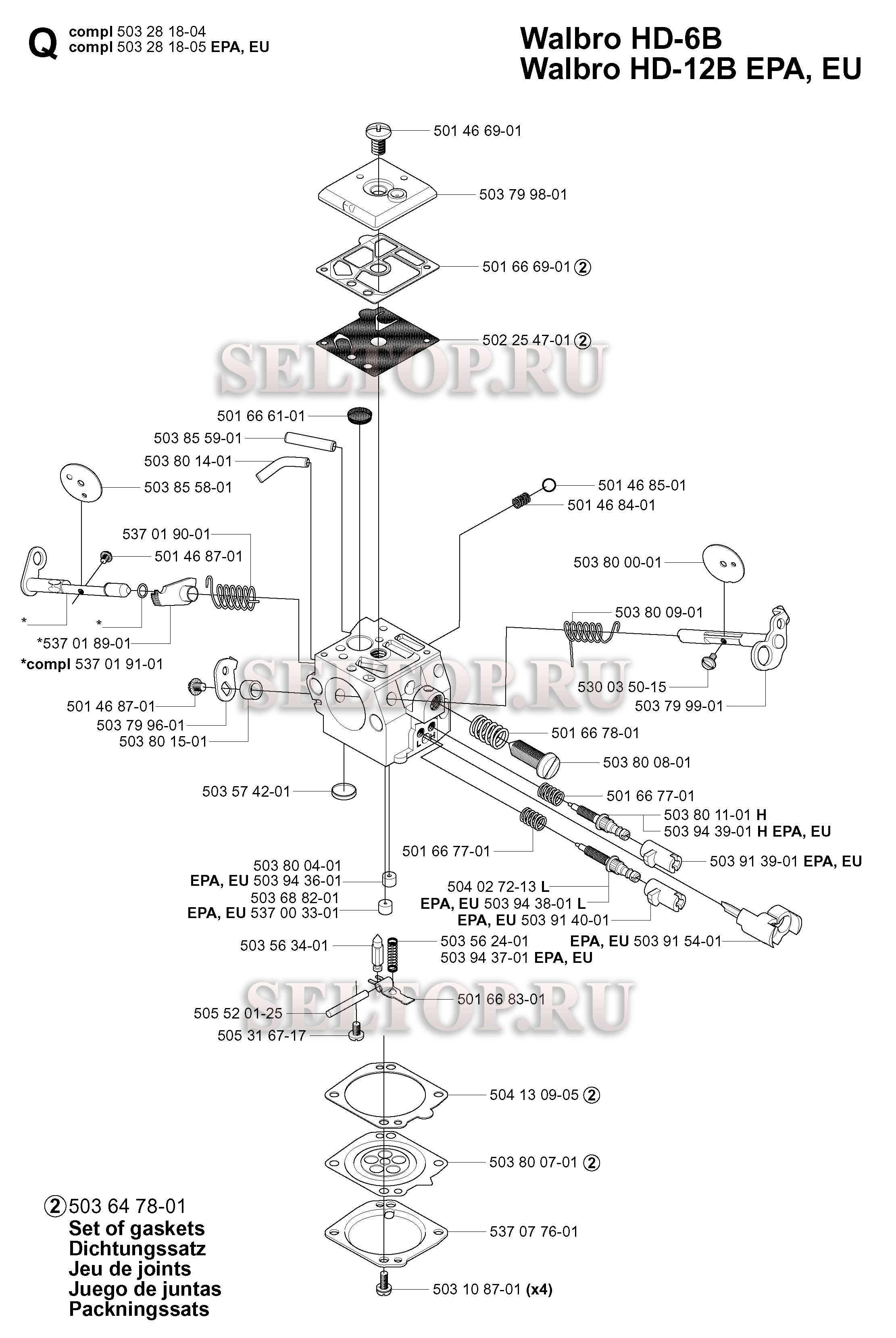 Запчасти карбюратора для бензопилы Husqvarna 362 XP SPECIAL (с 2005-05), взрыв-схема: