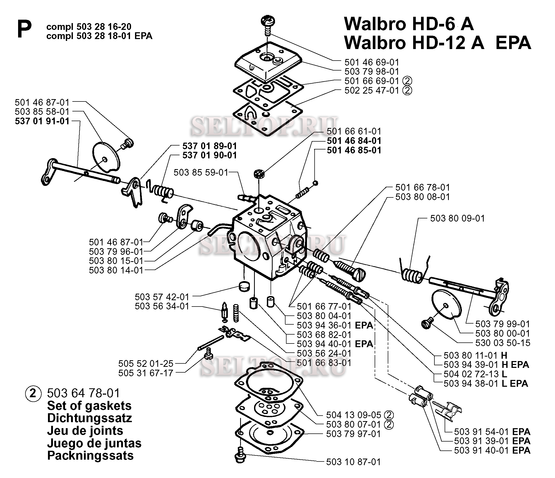 Запчасти карбюратора для бензопилы Husqvarna 362 XP (с 1999-05), взрыв-схема: