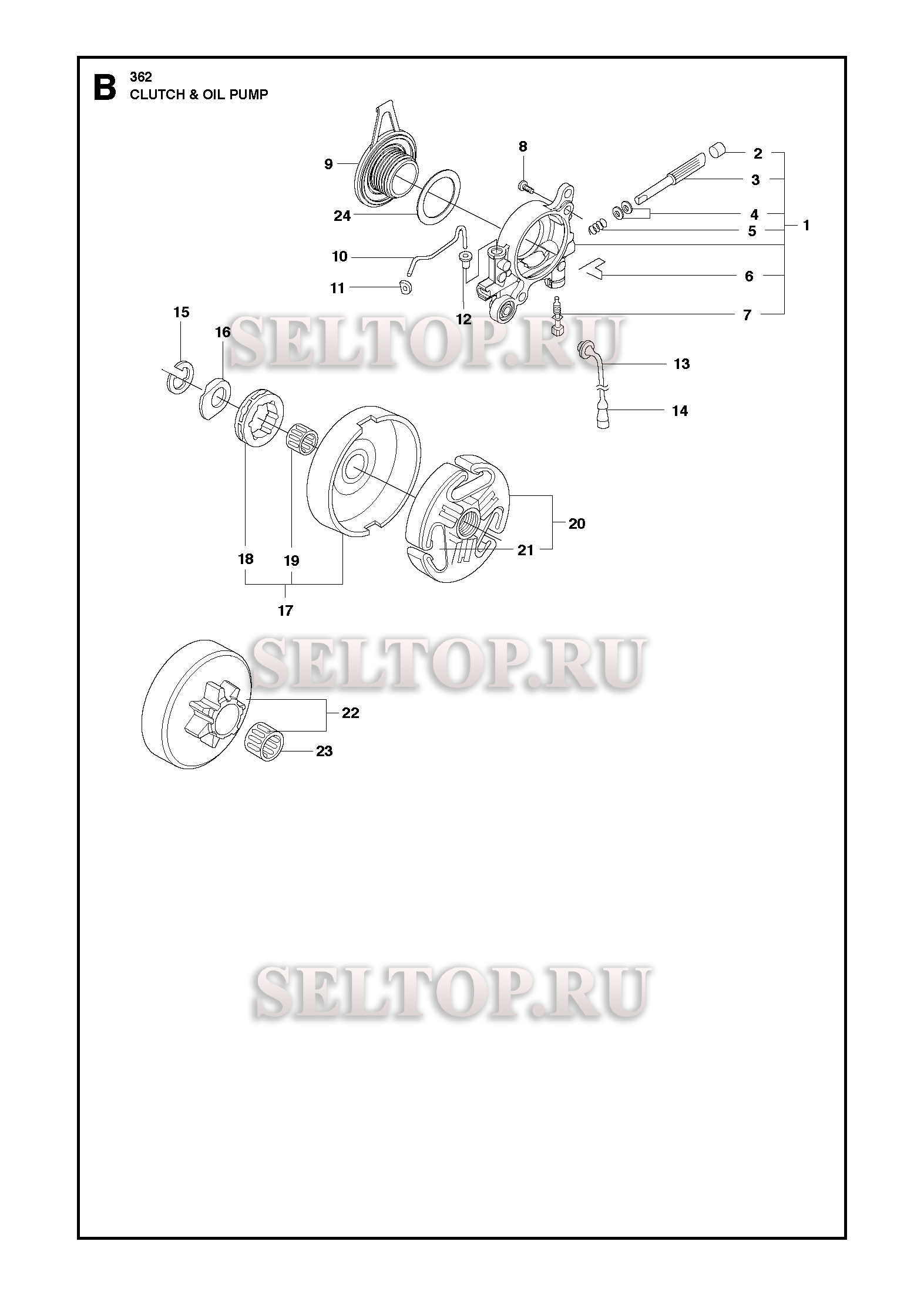 Сцепление, масляный насос для бензопилы Husqvarna 362 (с 2017-10)