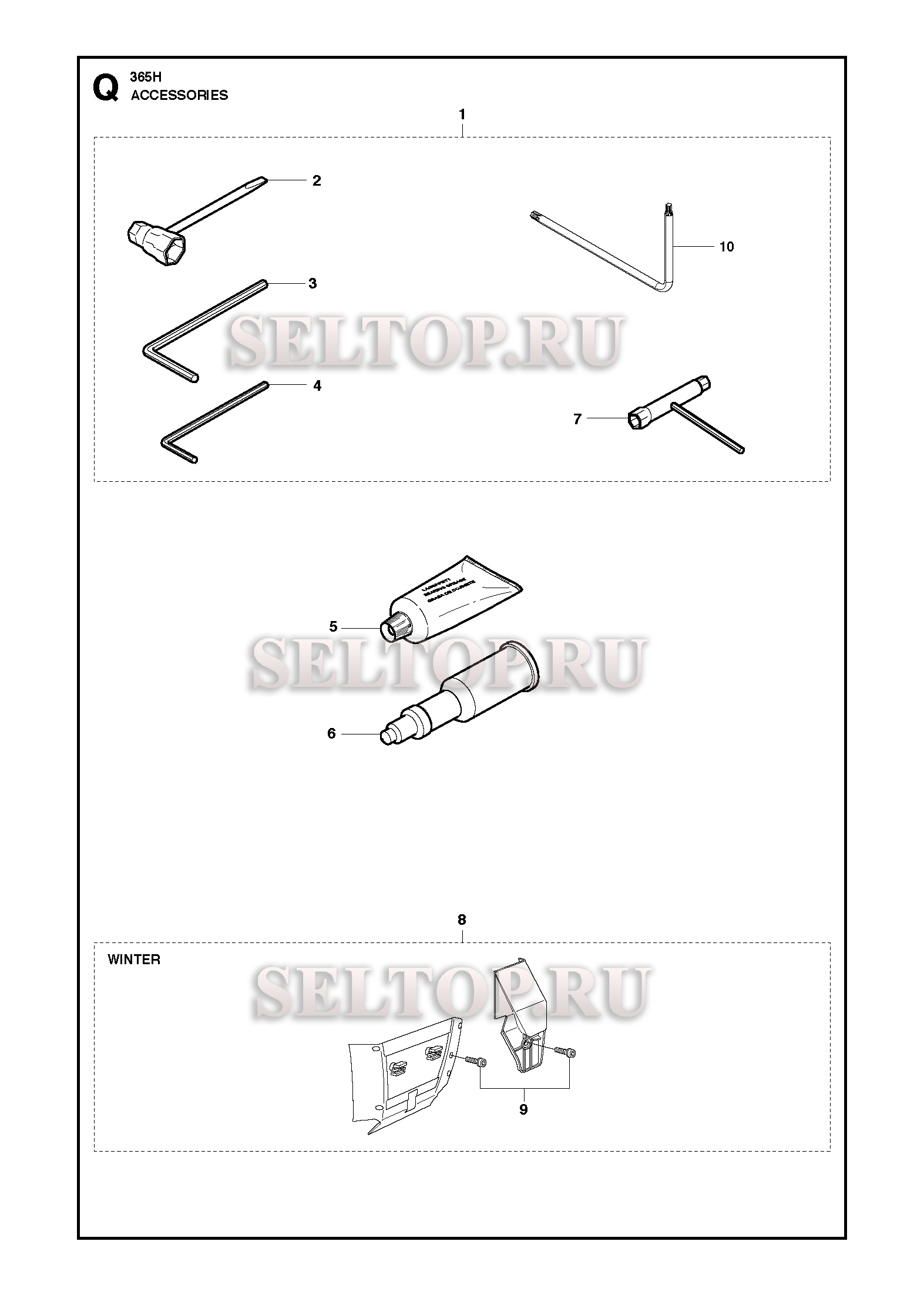 Аксессуары для бензопилы Husqvarna 365 H (с 2017-10), взрыв-схема: