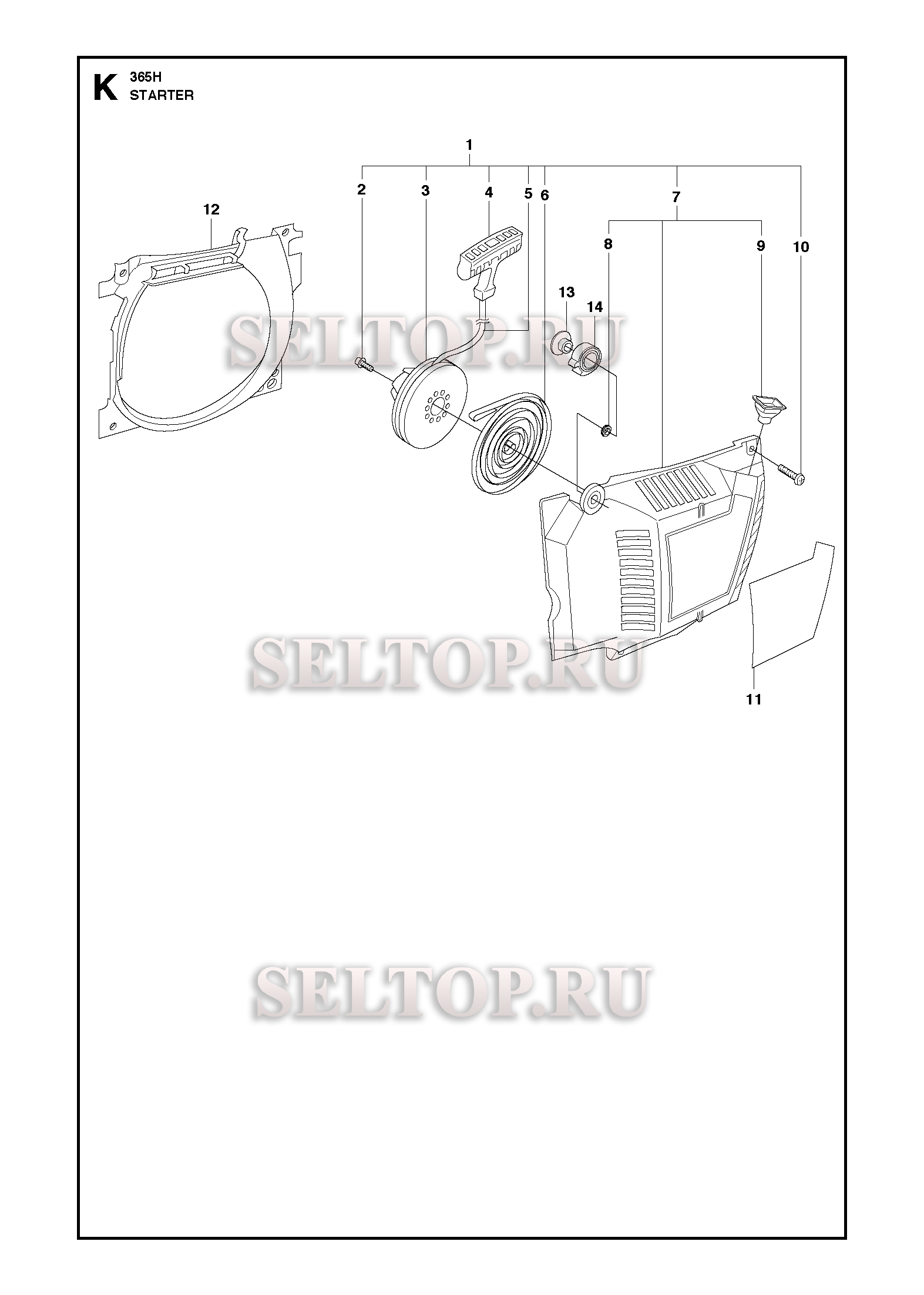 Стартер для бензопилы Husqvarna 365 H (с 2017-10), взрыв-схема:
