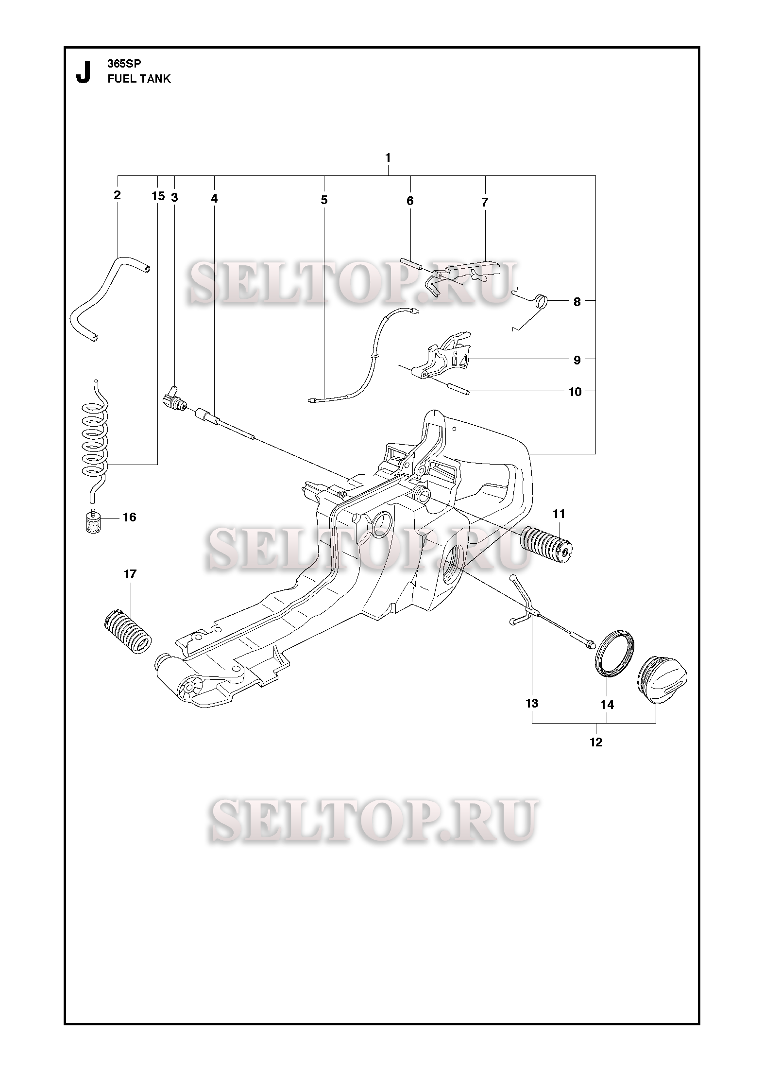 Топливный бак для бензопилы Husqvarna 365 SP (с 2016-10), взрыв-схема: