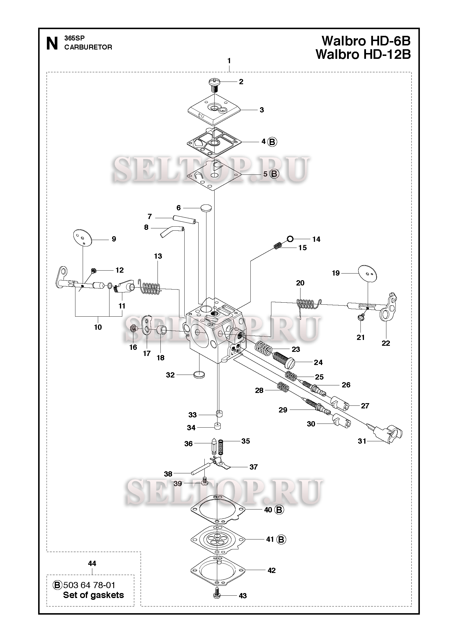 Карбюратор для бензопилы Husqvarna 365 SP (с 2018-04), взрыв-схема: