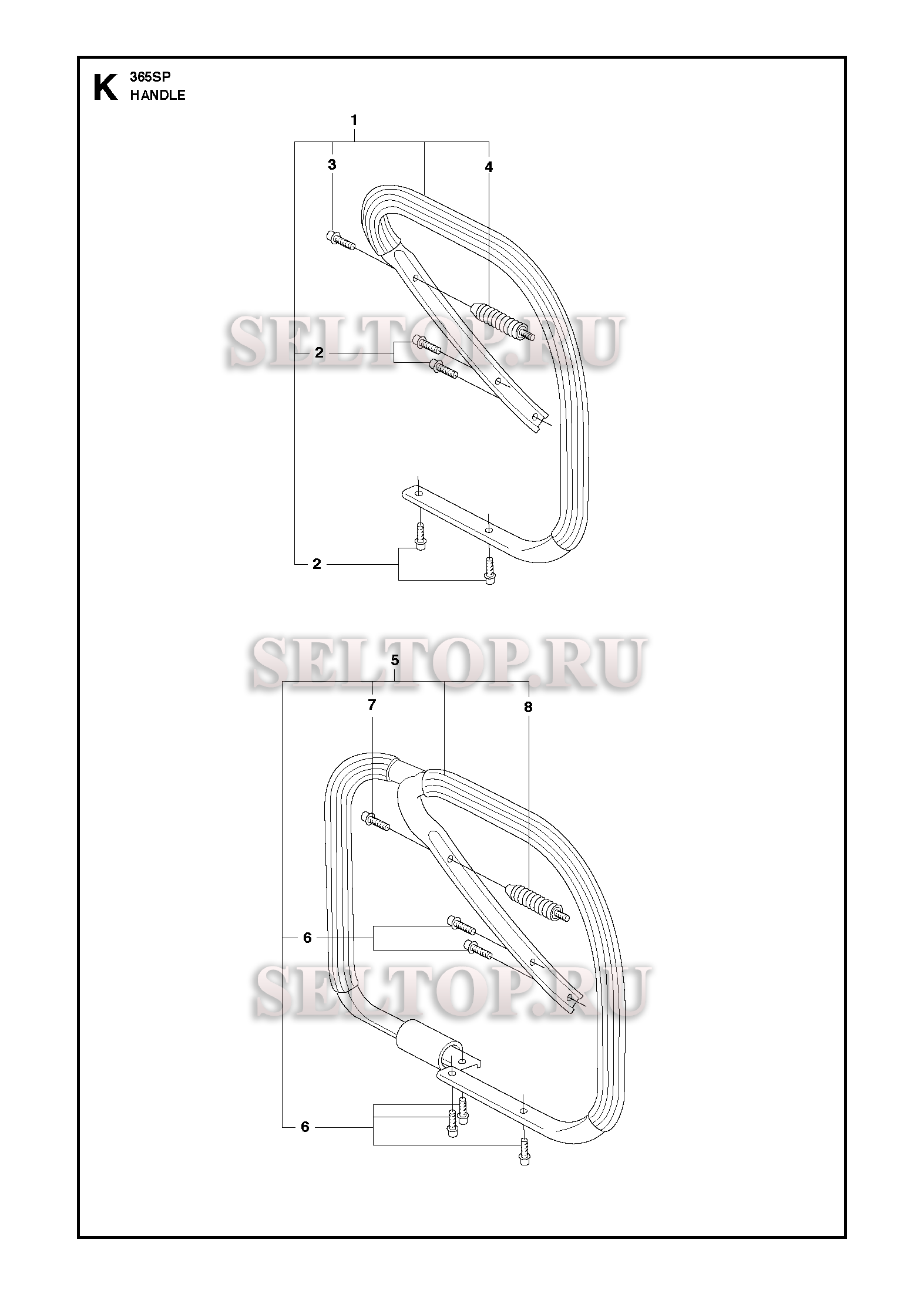 Ручка для бензопилы Husqvarna 365 SP (с 2018-04), взрыв-схема: