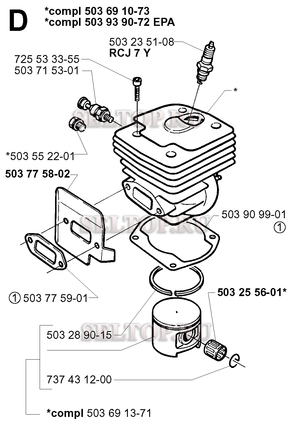 Поршень, цилиндр для бензопилы Husqvarna 365 SPECIAL (с 1999-11)