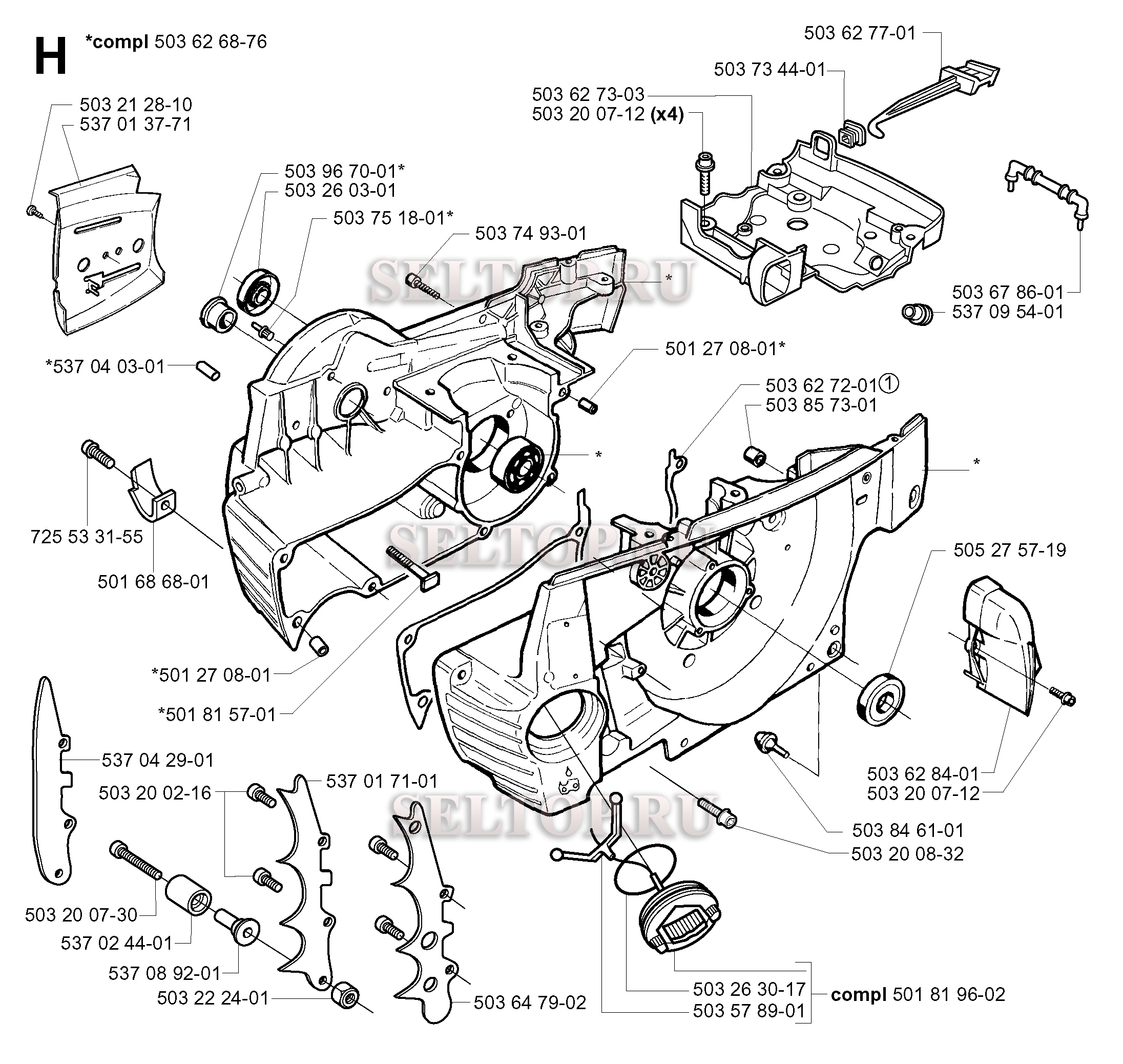 Картер для бензопилы Husqvarna 365 SPECIAL (с 2003-11), взрыв-схема: