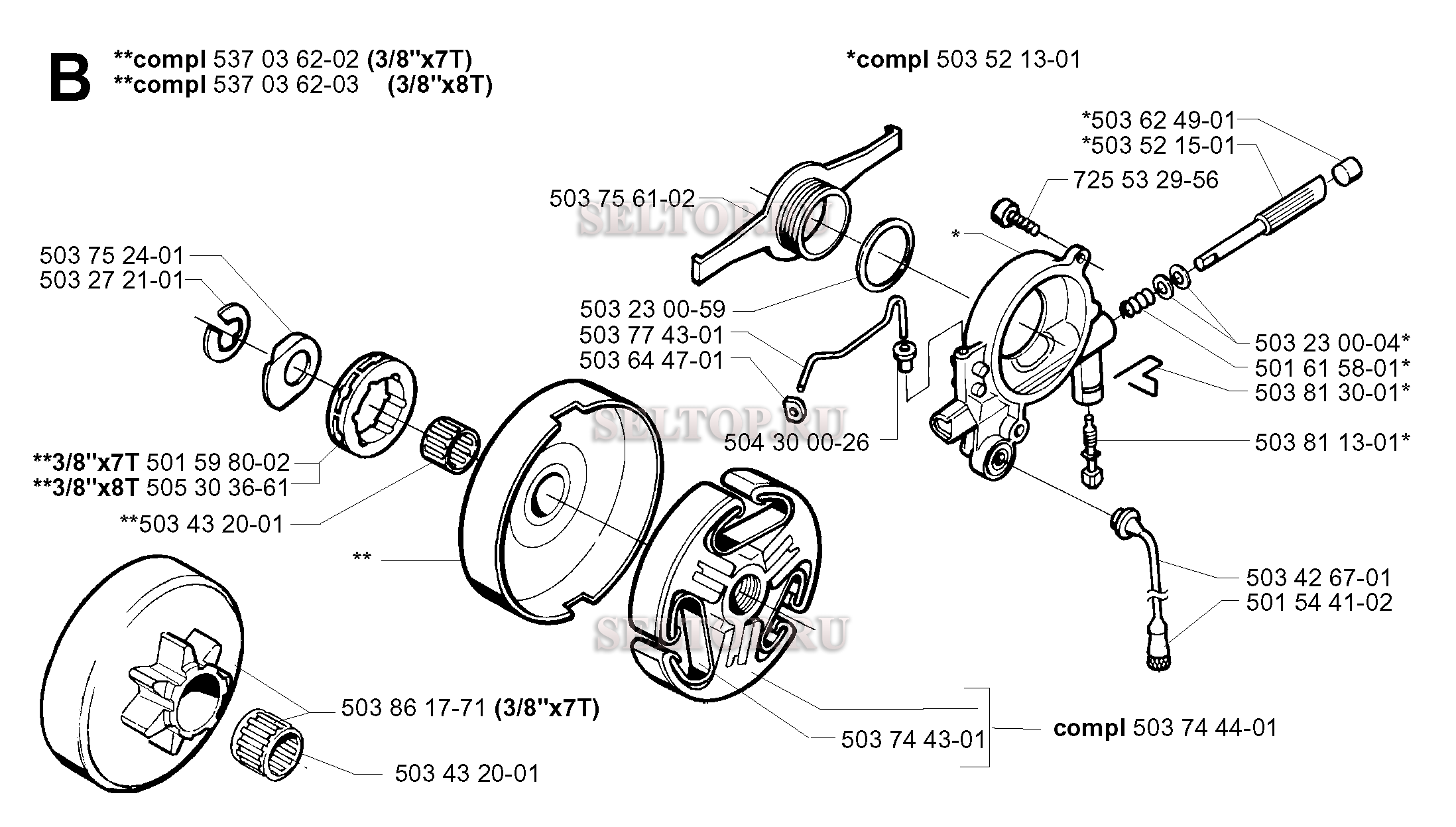 Сцепление, масляный насос для бензопилы Husqvarna 365 SPECIAL (с 2003-11)