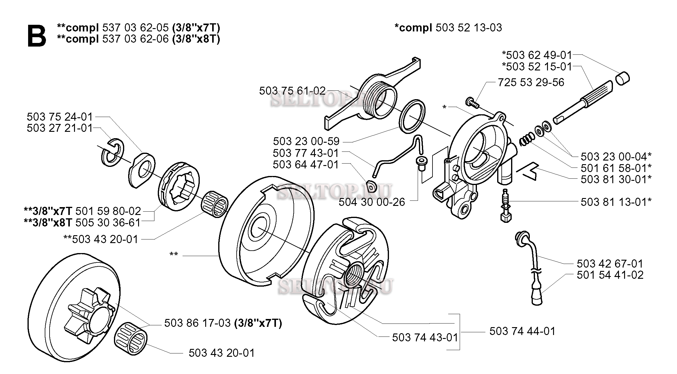 Сцепление, масляный насос для бензопилы Husqvarna 365 SPECIAL (с 2005-05)