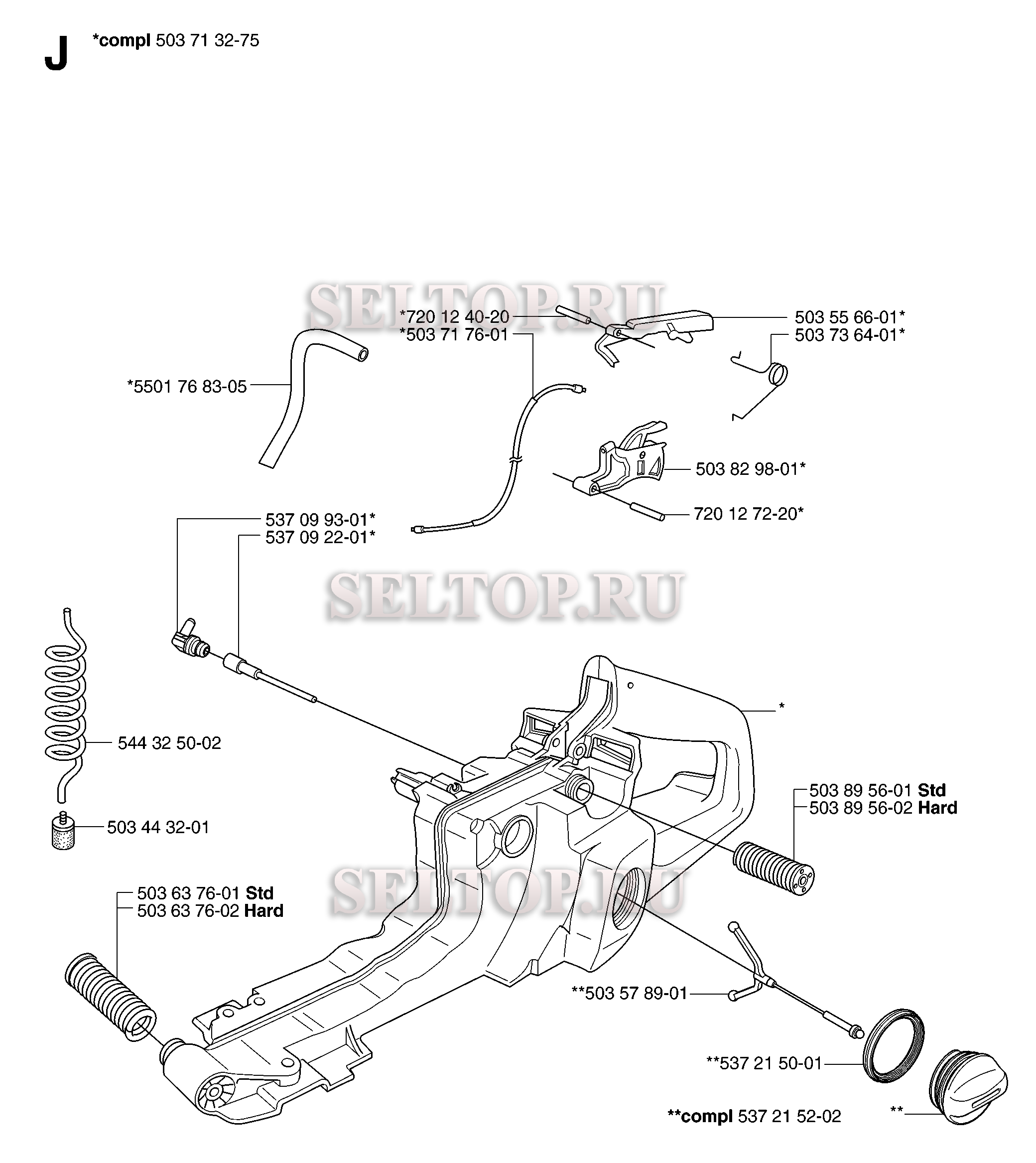 Топливный бак для бензопилы Husqvarna 365 SPECIAL (с 2007-03), взрыв-схема: