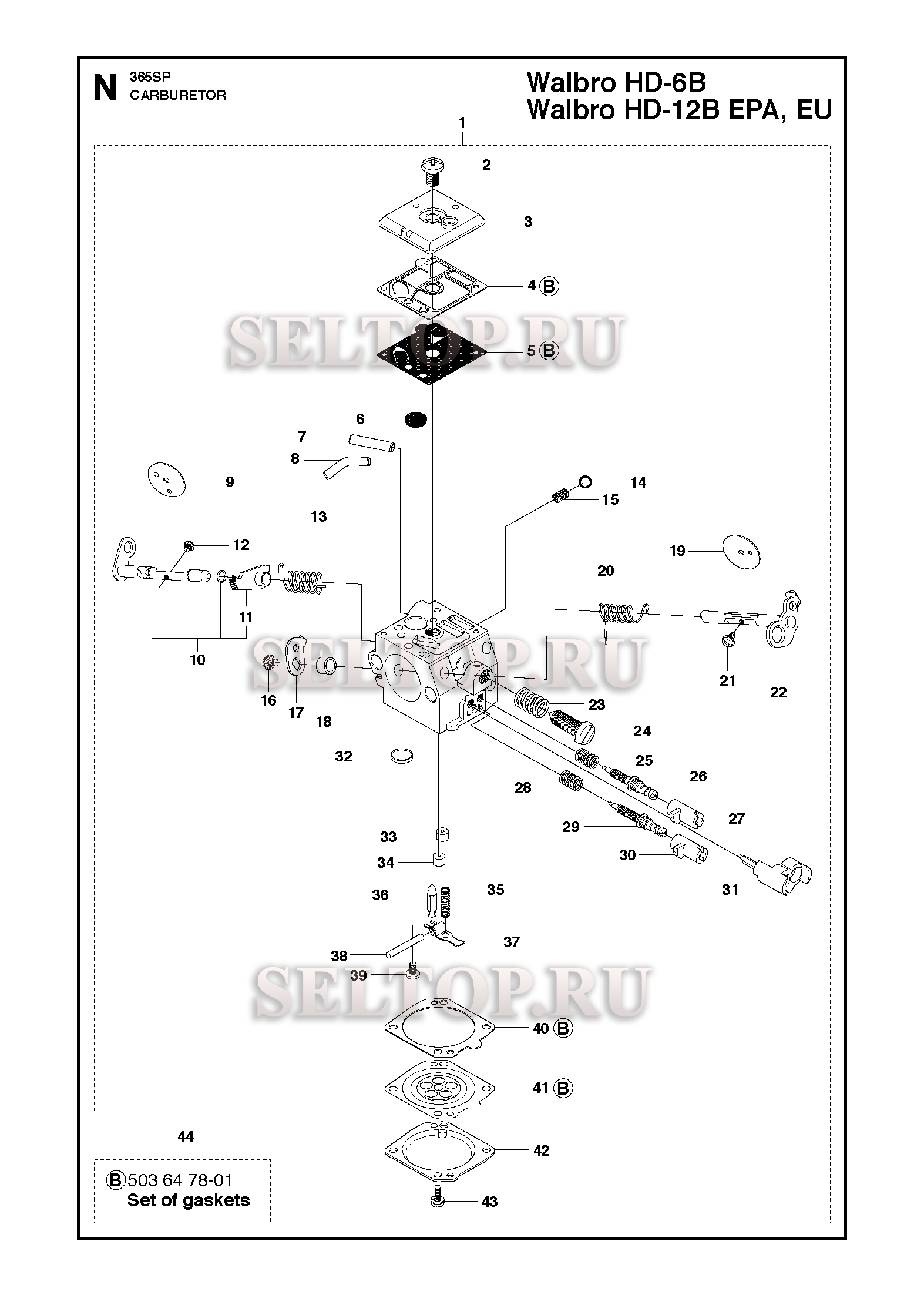 Карбюратор для бензопилы Husqvarna 365 SPECIAL (с 2011-05), взрыв-схема: