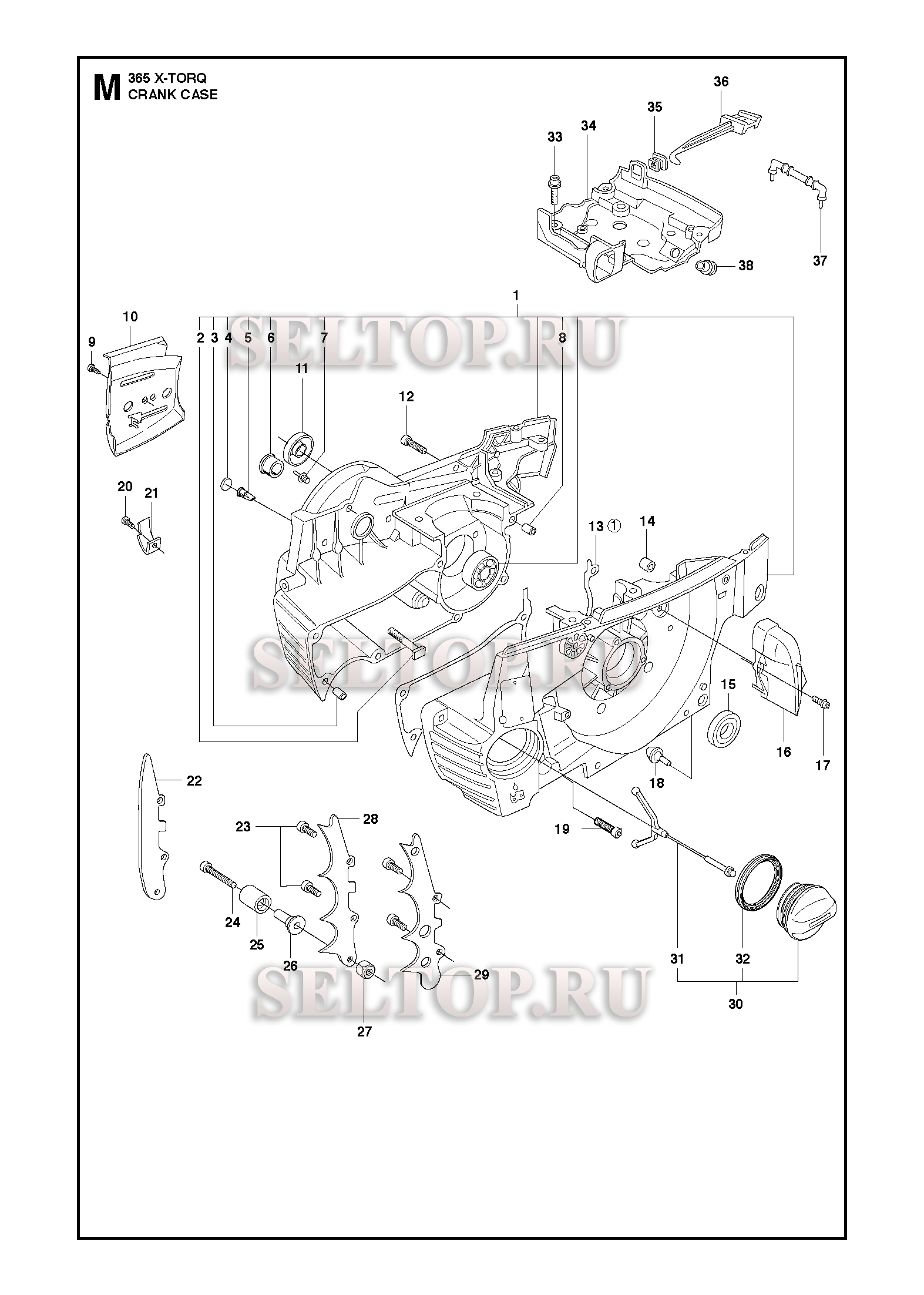 Картер для бензопилы Husqvarna 365 X-TORQ (с 2011-03), взрыв-схема: