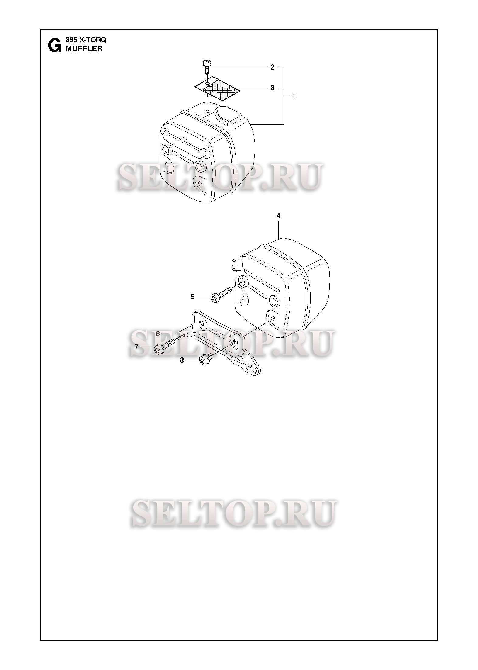 Глушитель для бензопилы Husqvarna 365 X-TORQ (с 2016-10), взрыв-схема:
