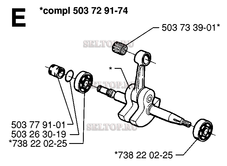 Коленвал для бензопилы Husqvarna 365 (с 1997-12), взрыв-схема: