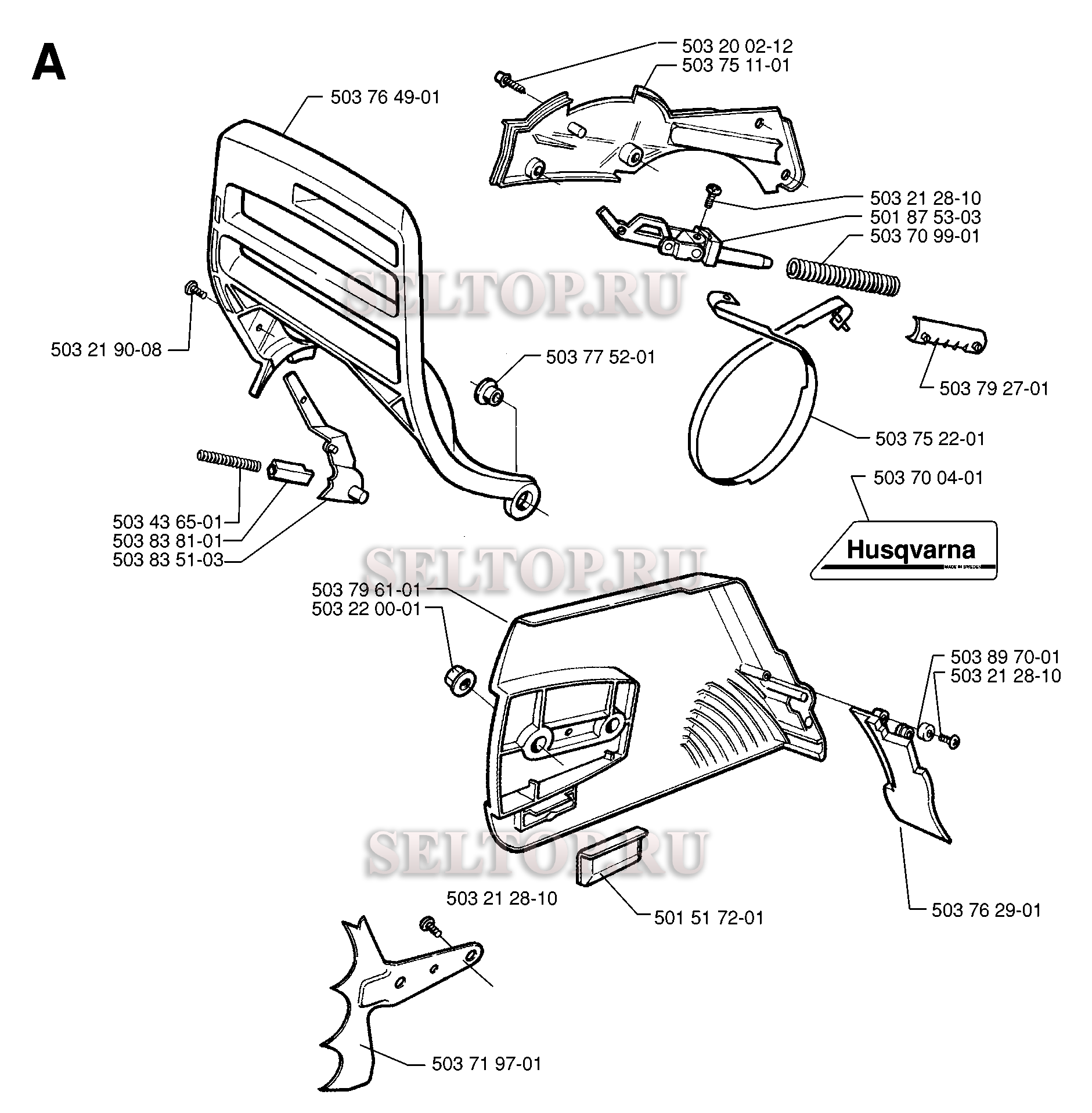 Тормоз цепи для бензопилы Husqvarna 365 (с 1997-12), взрыв-схема: