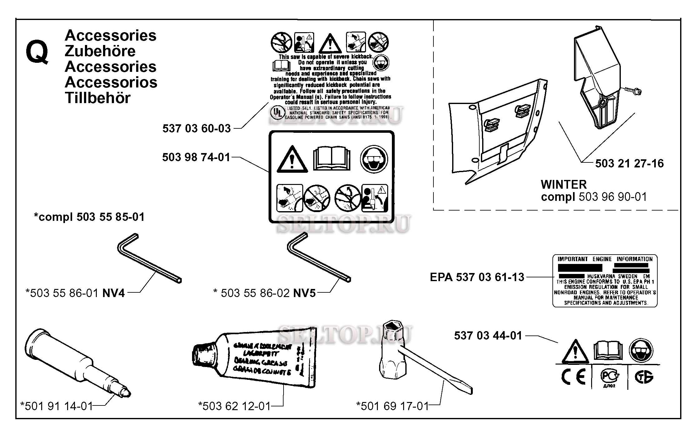 Аксессуары для бензопилы Husqvarna 365 (с 1999-04), взрыв-схема: