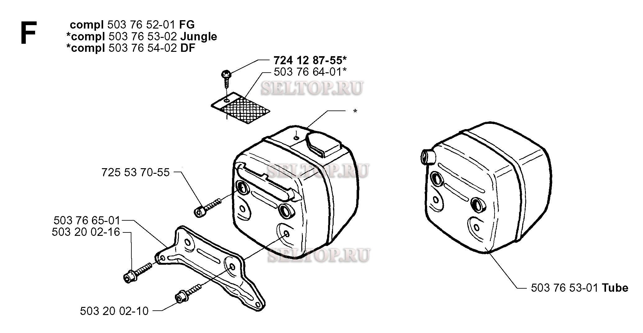 Глушитель для бензопилы Husqvarna 365 (с 1999-04), взрыв-схема: