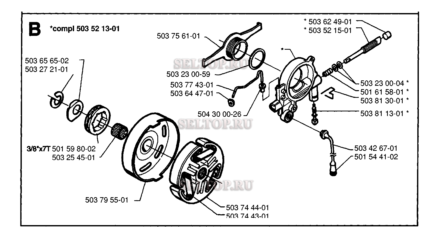 Сцепление, масляный насос для бензопилы Husqvarna 371 XP (с 1995-12)