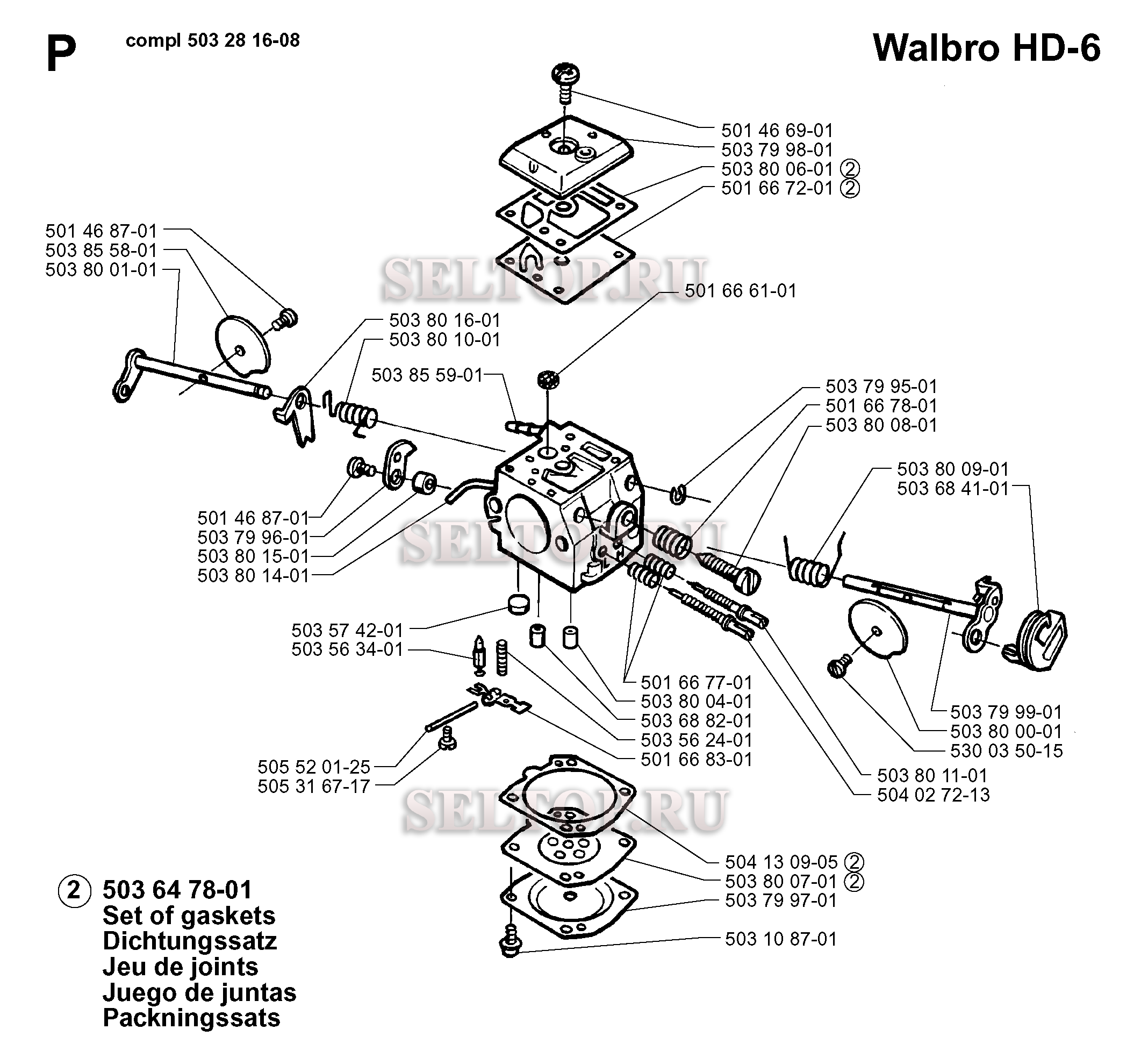 Запчасти карбюратора для бензопилы Husqvarna 371 XP (с 1996-03), взрыв-схема: