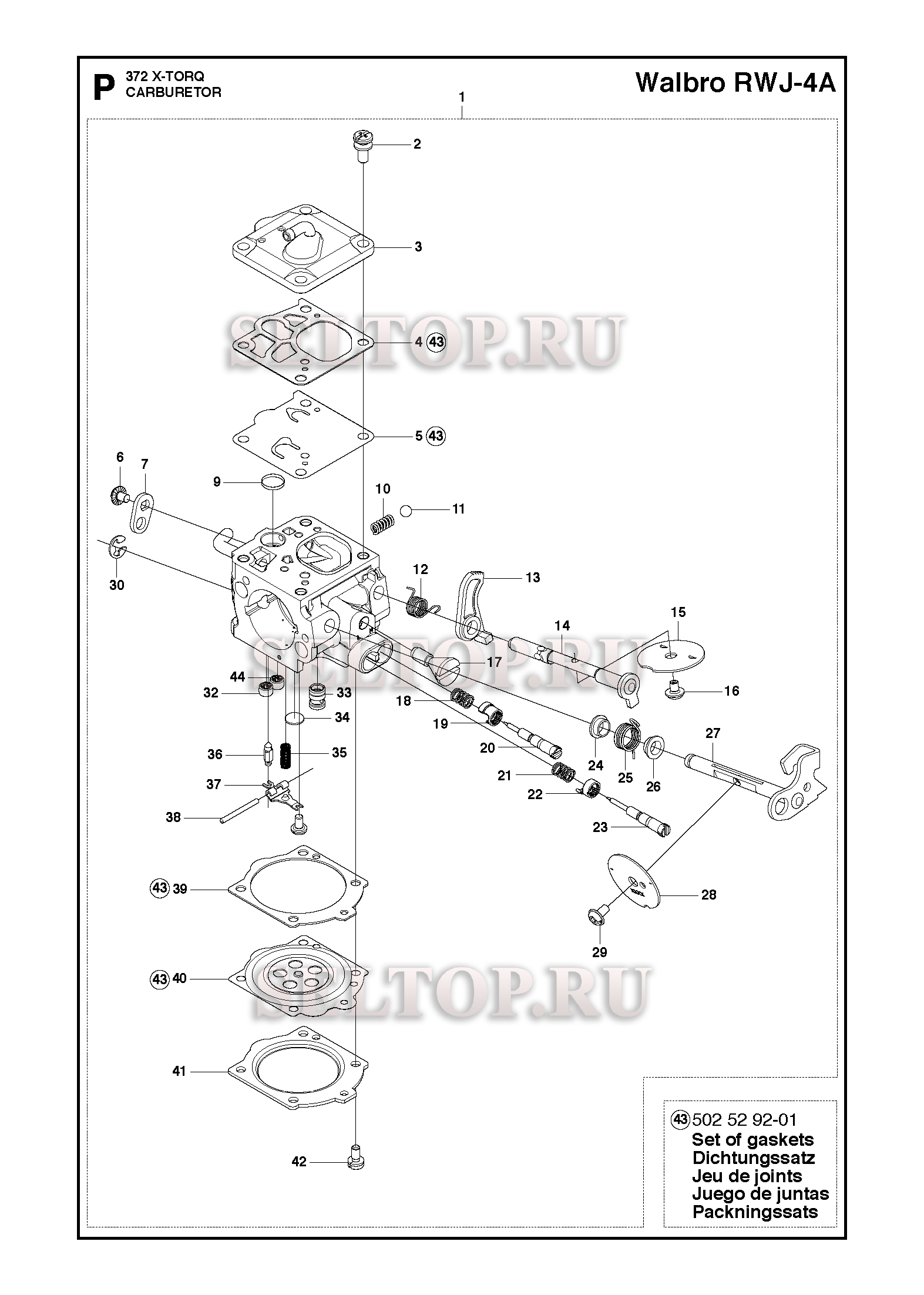 Карбюратор для бензопилы Husqvarna 372 XP X-TORQ (с 2010-04), взрыв-схема: