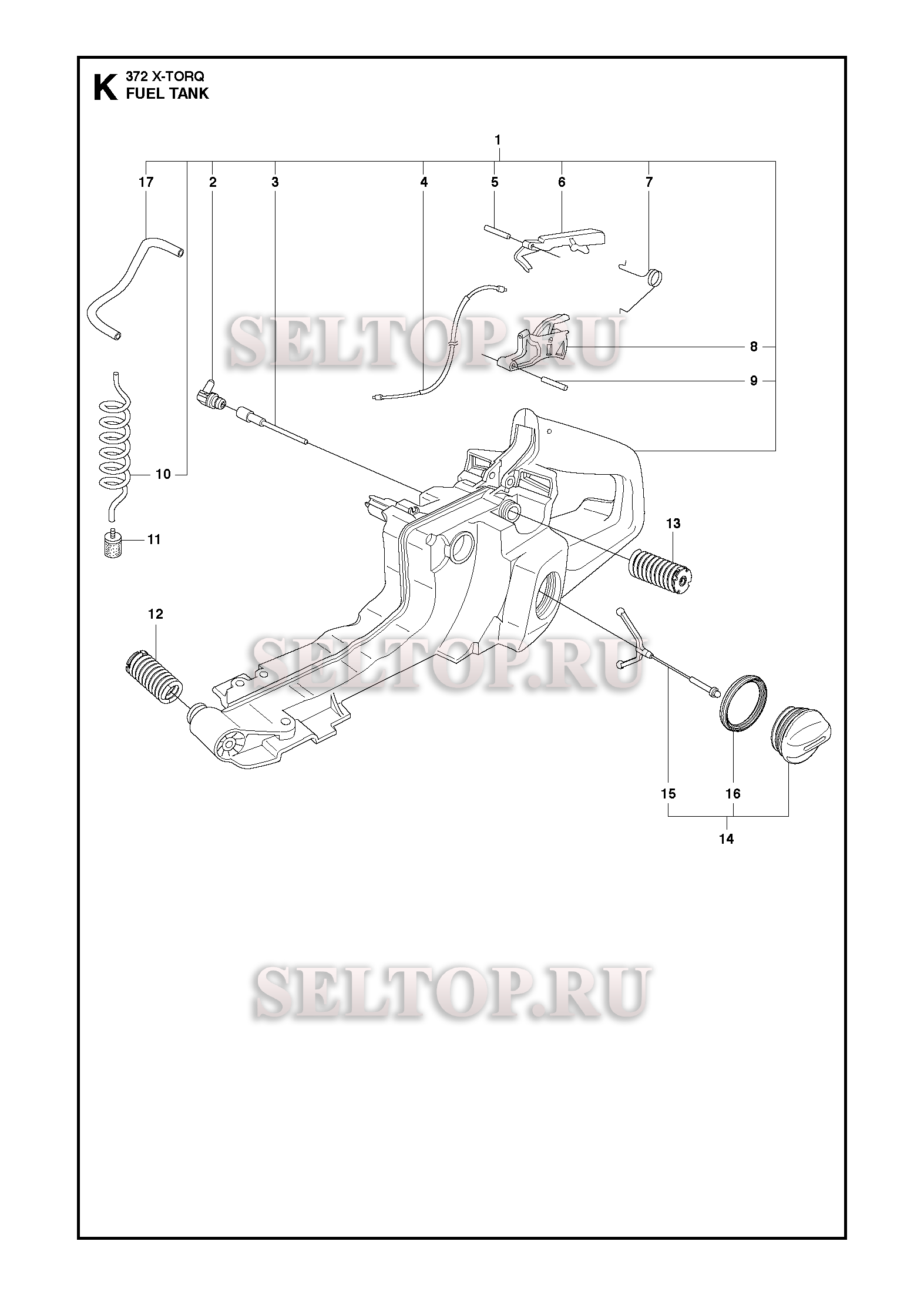 Топливный бак для бензопилы Husqvarna 372 XP X-TORQ (с 2017-08), взрыв-схема: