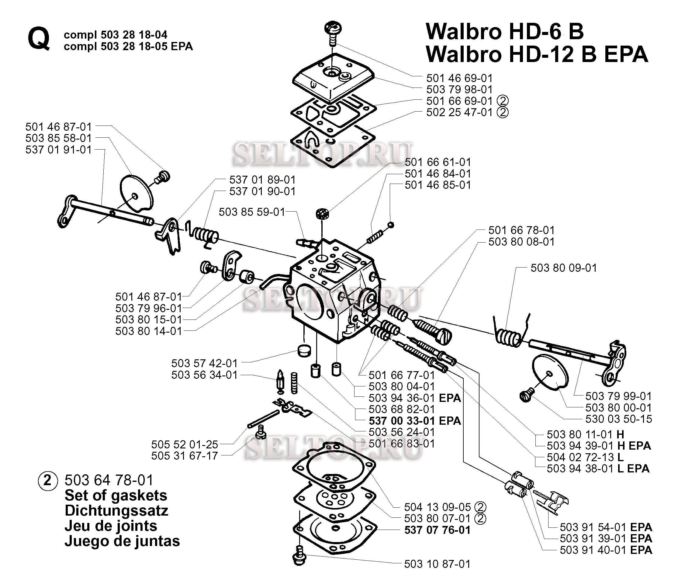 Запчасти карбюратора для бензопилы Husqvarna 372 XP (с 1999-11)