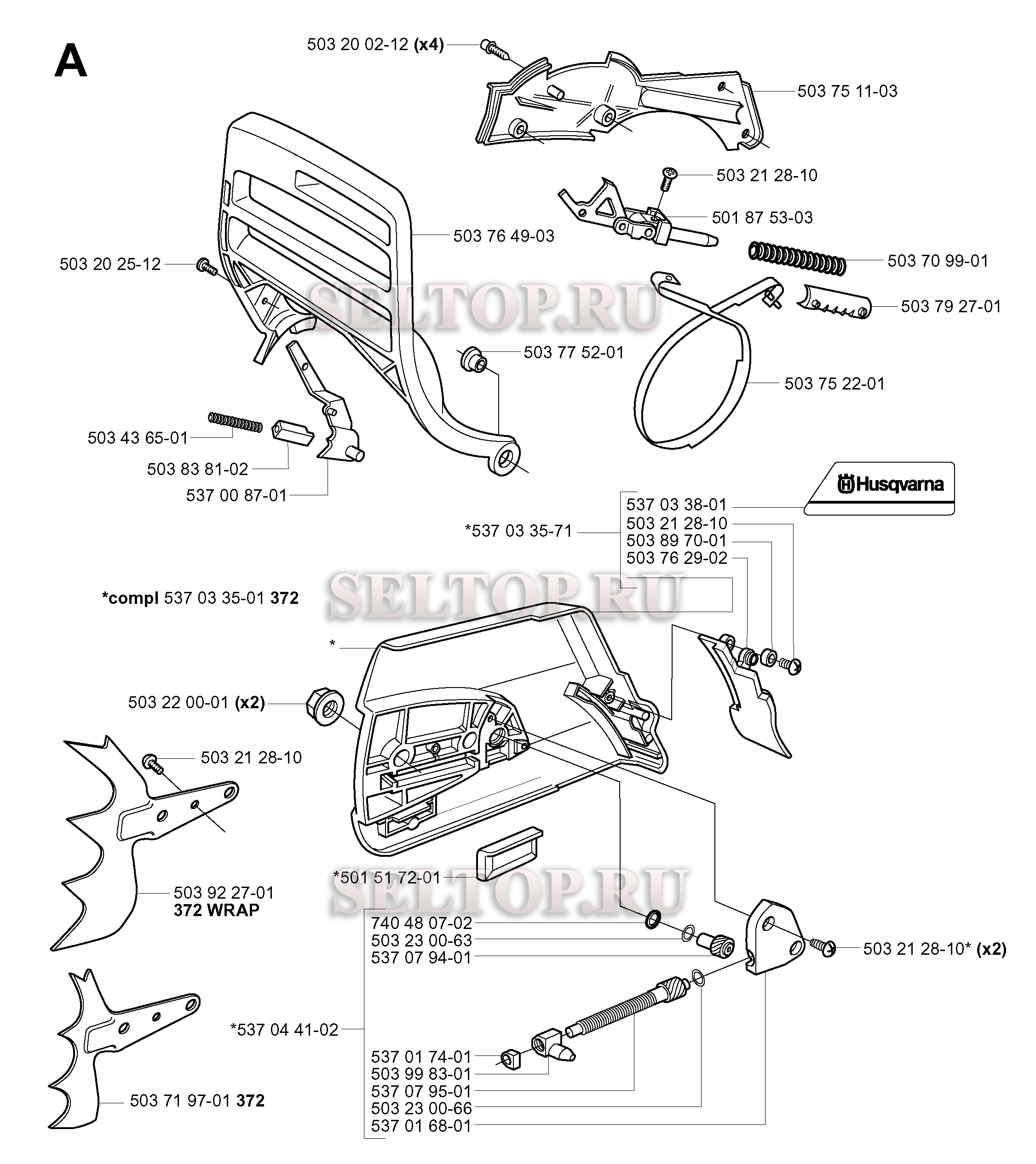 Тормоз цепи для бензопилы Husqvarna 372 XP (с 2001-10), взрыв-схема: