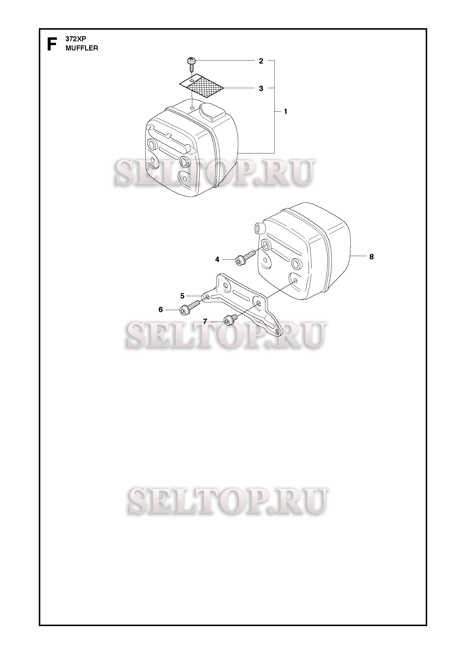 Глушитель для бензопилы Husqvarna 372 XP (с 2017-10), взрыв-схема: