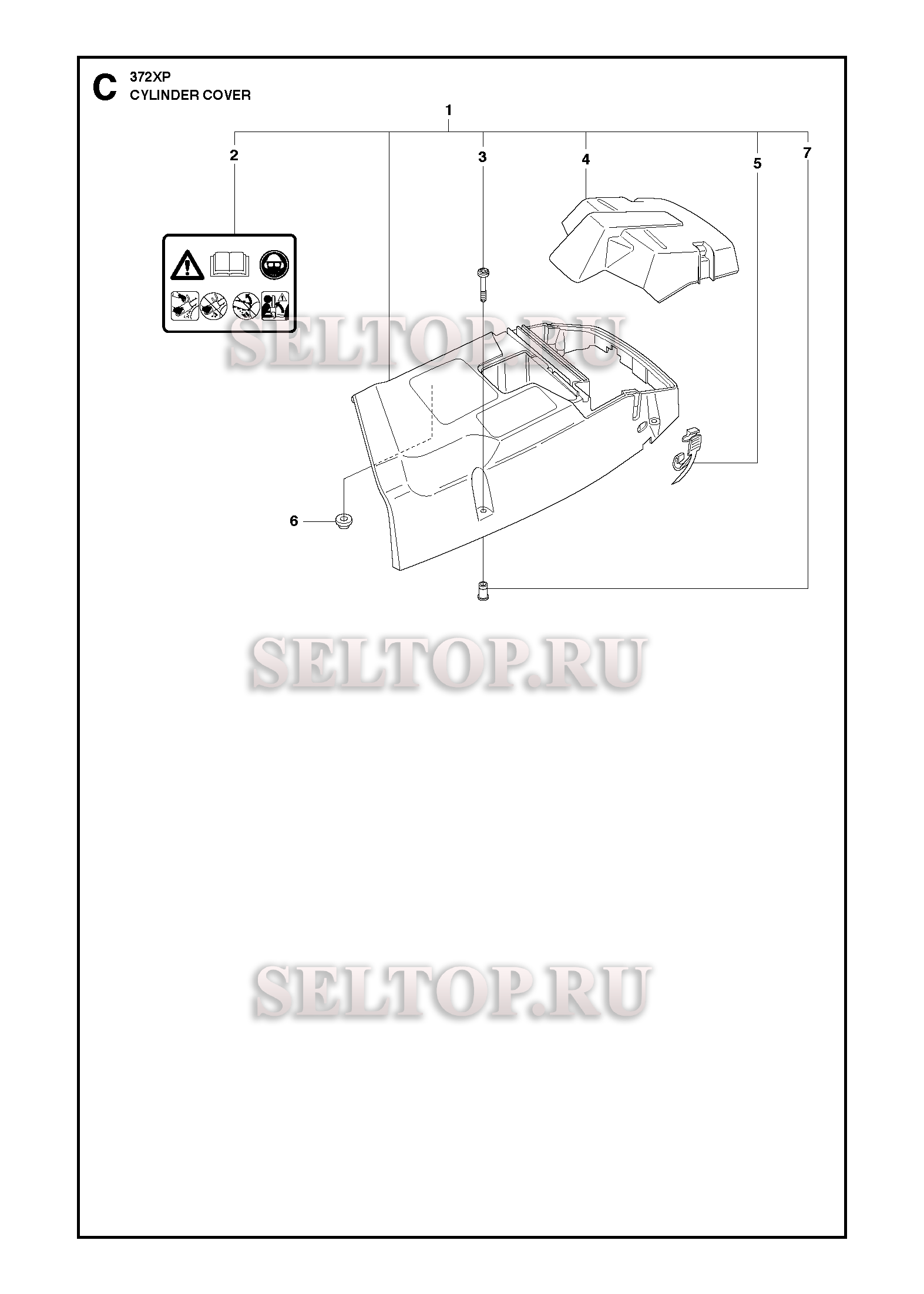 Крышка цилиндра для бензопилы Husqvarna 372 XP (с 2018-01), взрыв-схема: