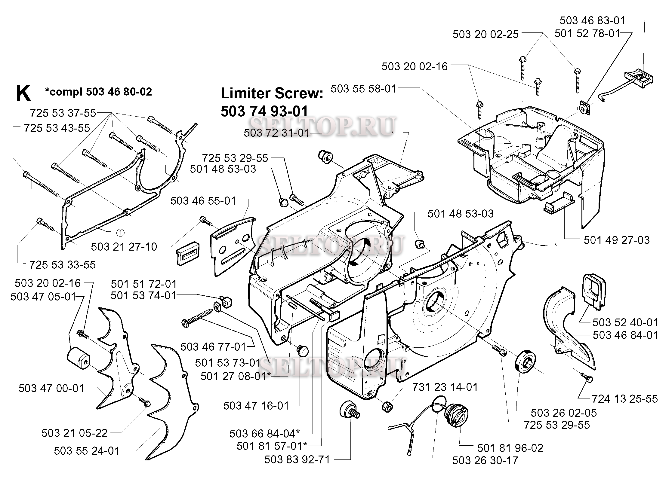 Картер для бензопилы Husqvarna 394 XP (с 1998-03), взрыв-схема: