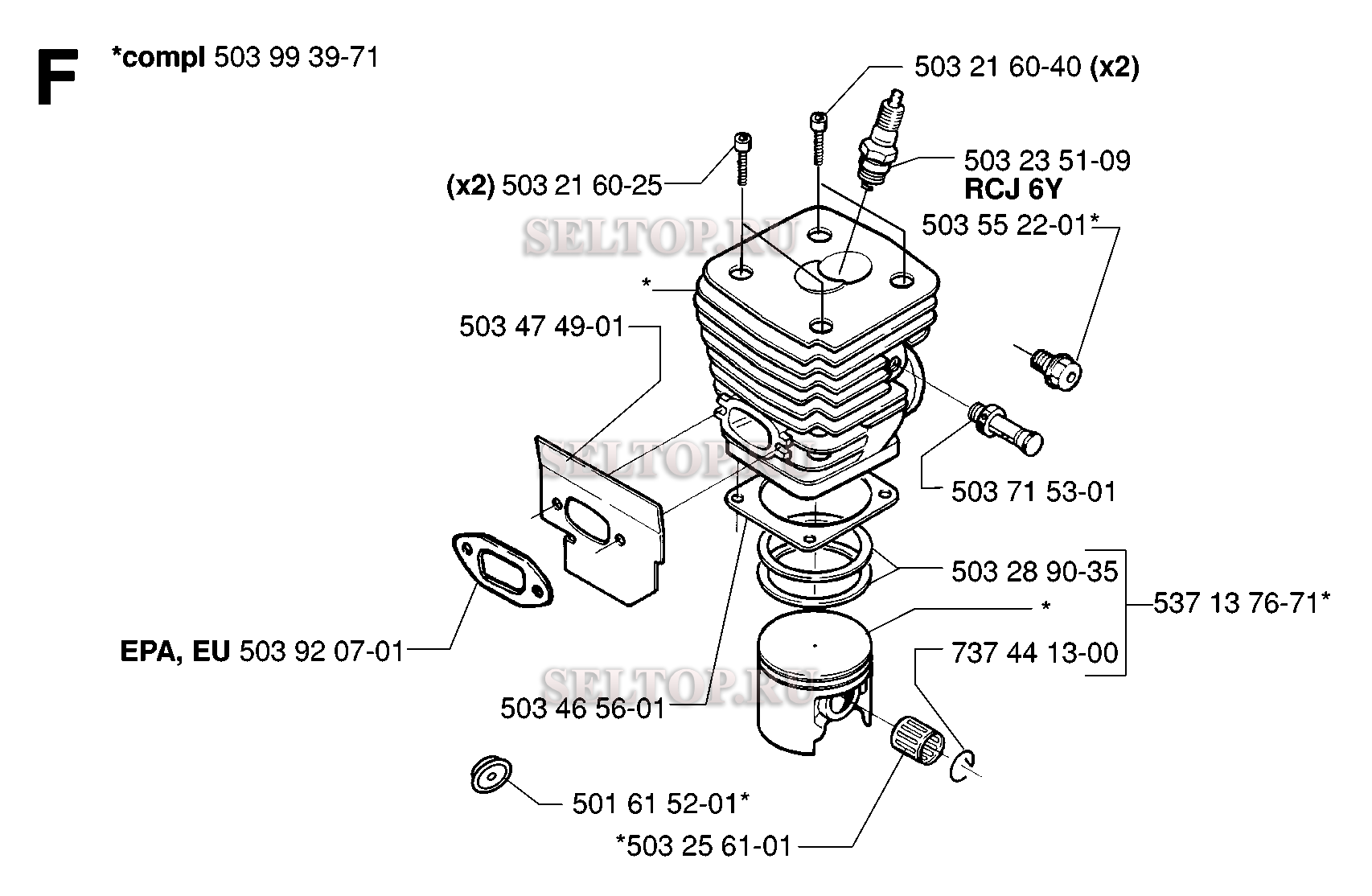 Поршень, цилиндр для бензопилы Husqvarna 395 XP EPA (с 2007-01)