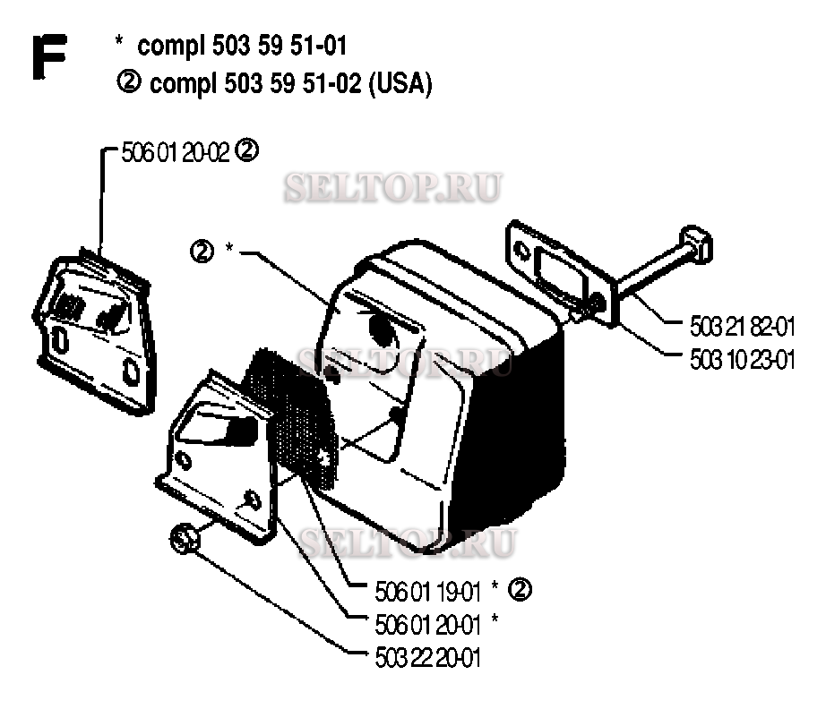 Глушитель для бензопилы Husqvarna 40 (с 1990-06), взрыв-схема: