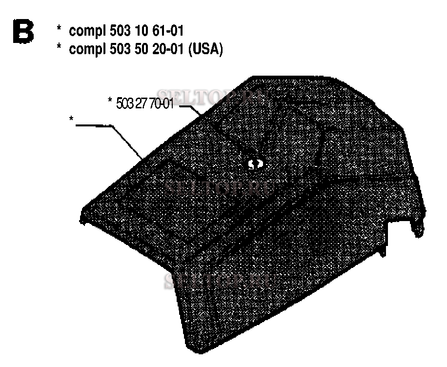 Кожух для бензопилы Husqvarna 40 (с 1990-06), взрыв-схема: