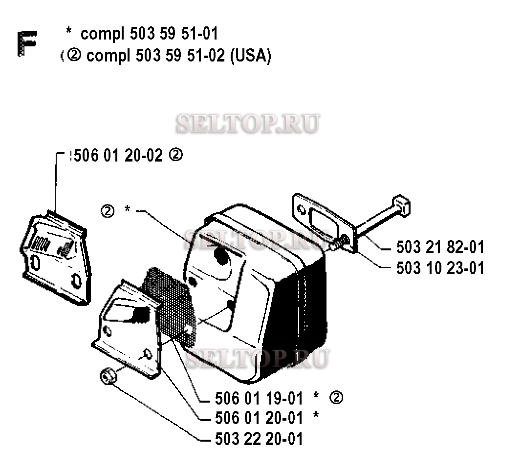 Глушитель для бензопилы Husqvarna 40 (с 1991-06), взрыв-схема: