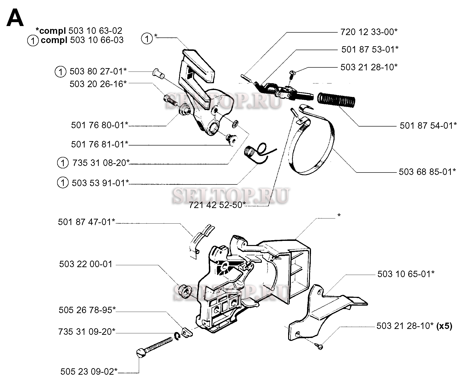 Тормоз цепи для бензопилы Husqvarna 40 (с 2001-09), взрыв-схема: