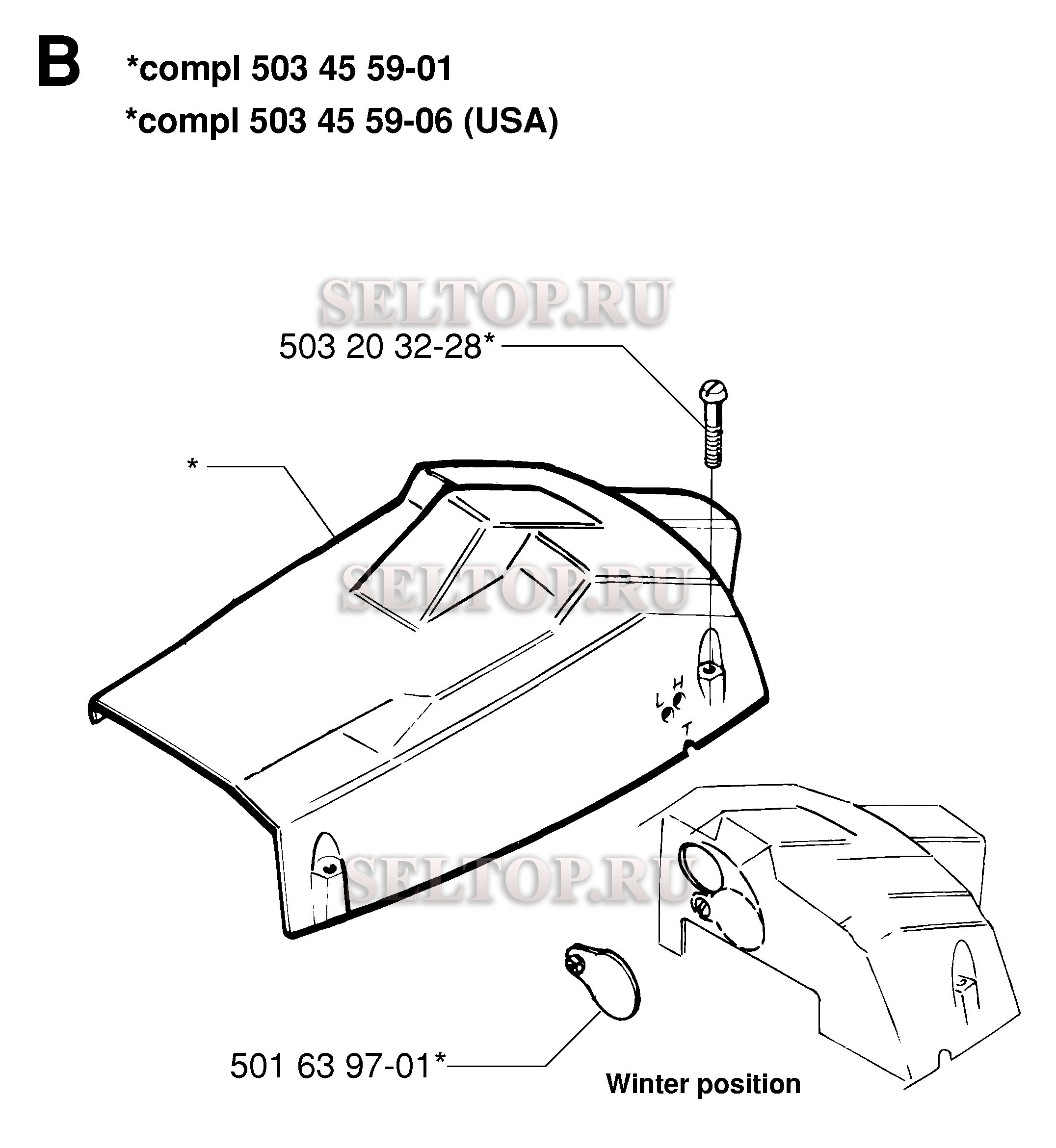 Кожух для бензопилы Husqvarna 42 (с 1994-12), взрыв-схема: