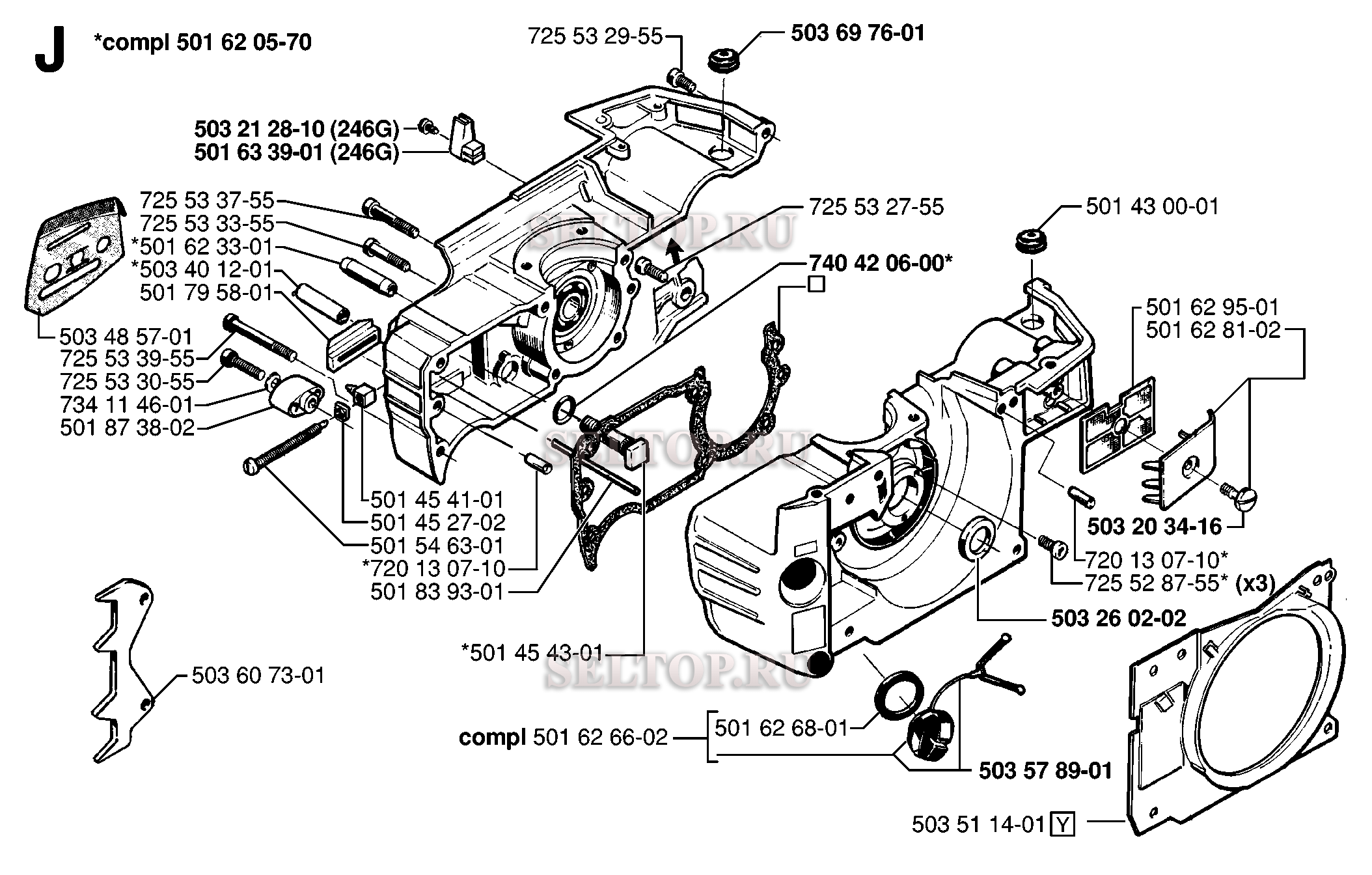 Картер для бензопилы Husqvarna 42 (с 1998-06), взрыв-схема: