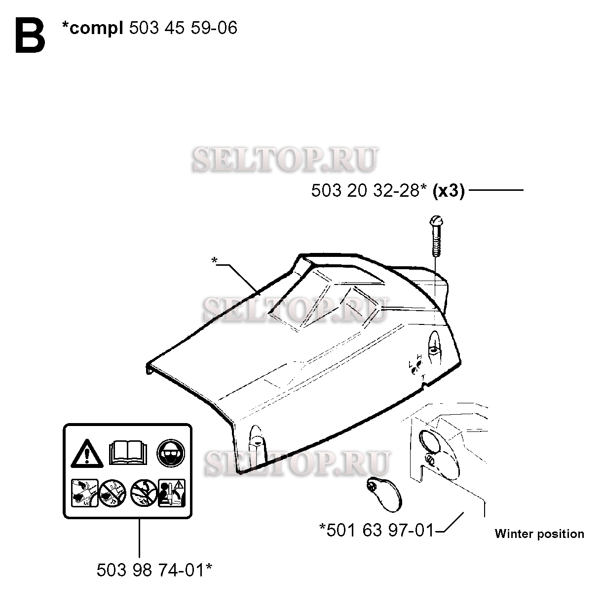 Кожух для бензопилы Husqvarna 42 (с 2001-10), взрыв-схема: