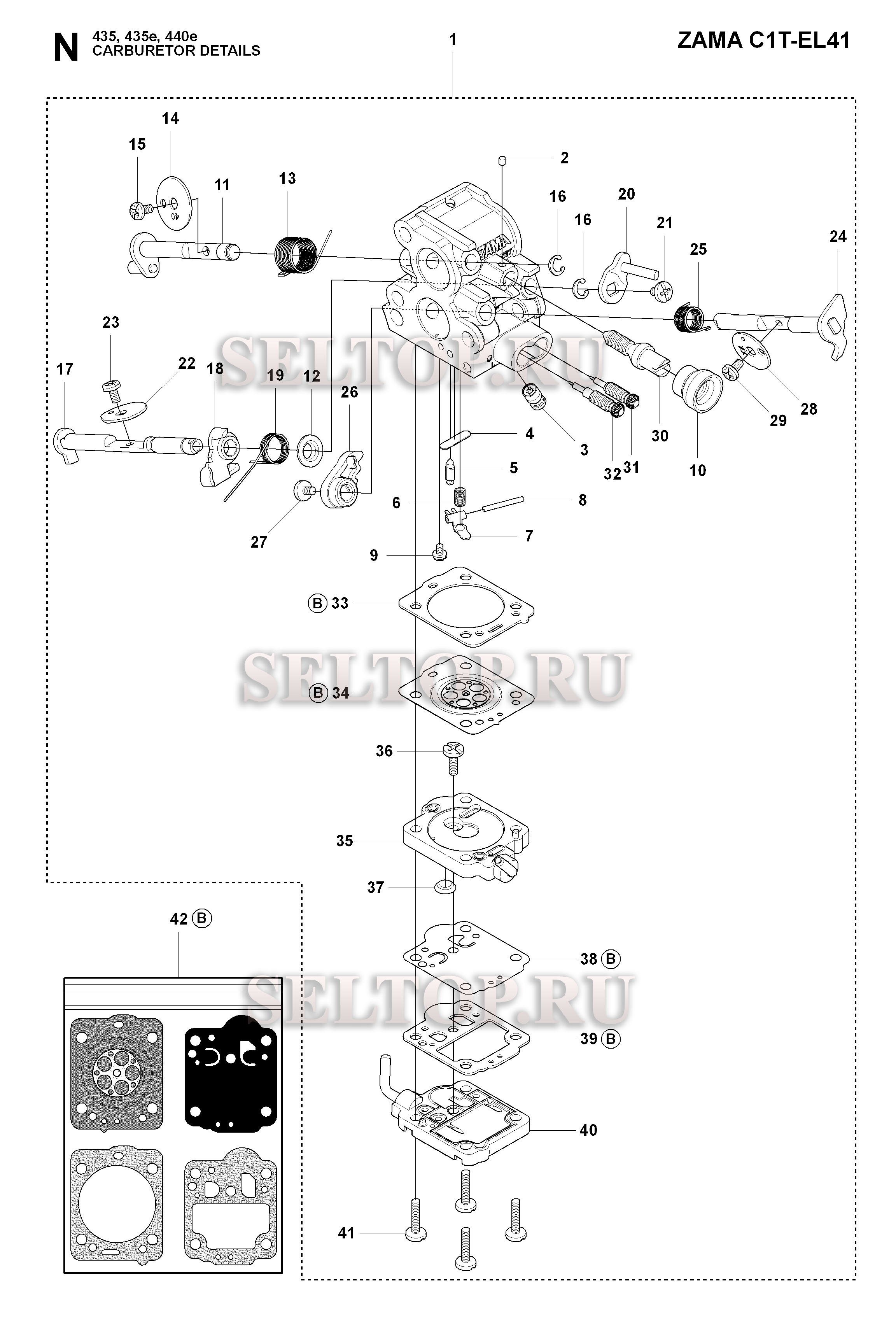 Запчасти карбюратора для бензопилы Husqvarna 435 E (с 2009-02)