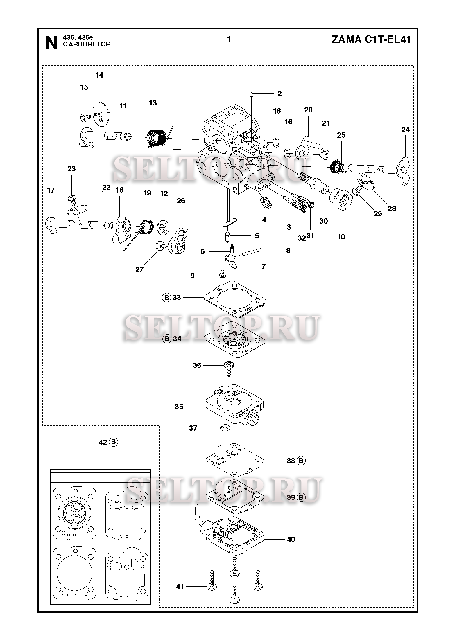 Карбюратор для бензопилы Husqvarna 435 E (с 2011-05), взрыв-схема: