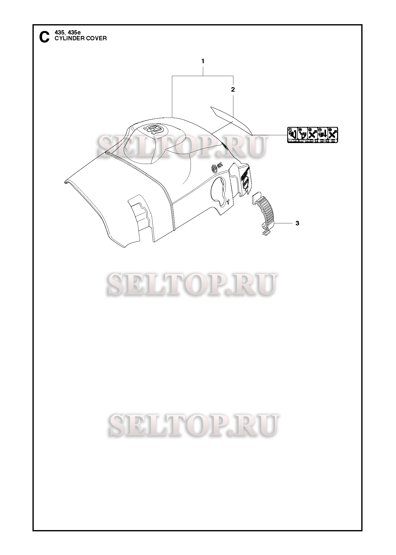 Крышка цилиндра для бензопилы Husqvarna 435 E (с 2011-05), взрыв-схема: